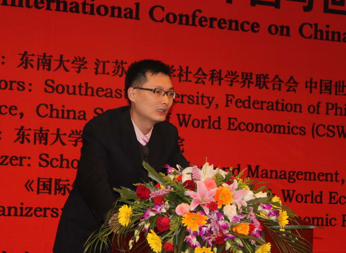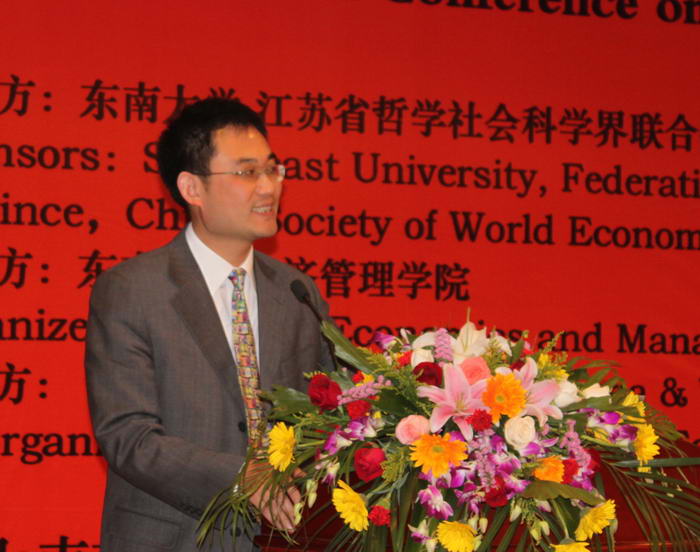 开幕式由太阳集官网院长徐康宁教授主持,我校浦跃朴副校长,江苏省社科联副主席周明生、中国世界经济学会秘书长邵滨鸿分别代表主办方致辞。日本东北大学太阳集团tyc539院长佃良彦教授、中国社科院世界经济与政治研究所所长张宇燕教授、太阳集团tyc539院长徐康宁教授、英国加的夫商学院肯特.马休教授、南京农业大学太阳集团tyc539钟甫宁教授、澳大利亚西澳大学商学院吴延瑞教授分别作了大会主题报告。