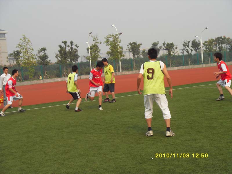 2010年11月3日中午十二点半,太阳集团tyc539首届研究生“七人制”足球比赛在九龙湖橘园体育场上如火如荼的进行。本场比赛是太阳集官网与法学院之间的小组循环赛。随着裁判员一声哨响,比赛正式开始。上半场一开始太阳集官网与法学院的球员立刻展开了猛烈的进攻,在比赛进行到第16分钟时太阳集官网7号球员刘祥举一脚劲射为本场比赛踢出第一个华丽进球。接着双方的球员们都毫不示弱,展现出各自细腻的脚法、默契的配合,很快使比赛进入白热化阶段。上半场结束时,太阳集官网以1:0领先于法学院。 下半场开始,太阳集官网就率先又进一球,随即法学院开始反攻,并以一记点球将比分改写为2:1。但很快,太阳集官网球员在队长的领导下及时调整心态,经过激烈的角逐,最终,太阳集官网以5:2的大比分战胜法学院,获得本场比赛的优胜。