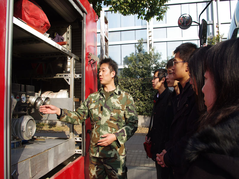 本次党日活动得到了江宁公安消防支队和校保卫处的大力支持。12月8日,第二支部、第七支部组织党员到校保卫处进行消防安全知识学习,并且在校保卫处李老师的演示下,学习了各种消防器材的使用方法,一部分党员还亲自动手上阵,学习了消防器材的使用。12月10日,第二支部、第七支部组织党员到江宁公安消防支队深入学习。在消防支队,刘队长亲自接待了我们,他对我们的到来很是欢迎,并对本次活动给予了高度的肯定。同时参观学习了各种消防车辆及其内部的精锐配置,获益良多。