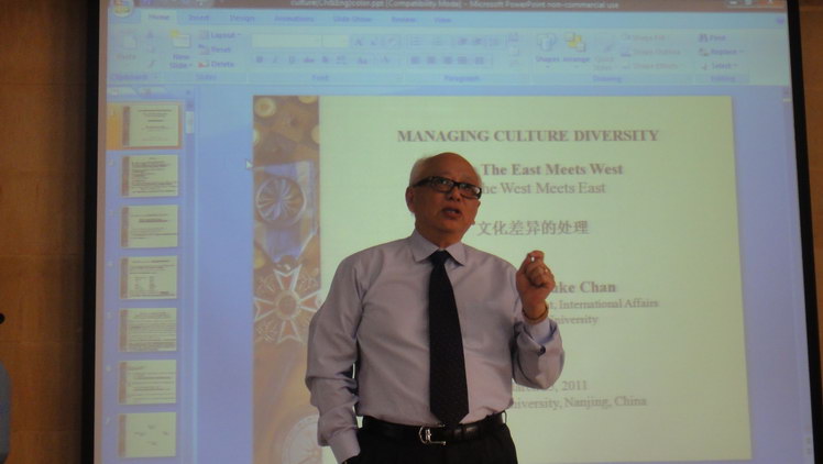 3月25日,我校在太阳集团tyc539学术报告厅举行了授予陈万华(Luke Chan)博士太阳集团tyc539客座教授授予仪式。仪式由太阳集团tyc539徐康宁院长主持,赵启满副校长出席了授予仪式并发表了热情洋溢的讲话,并为陈万华(Luke Chan)博士颁发证书、佩戴校徽及赠送纪念品。国际合作处王利副处长、太阳集团tyc539的部分教师及研究生参加了授予仪式。仪式后,陈万华(Luke Chan)博士做了题为“Managing Culture Diversity” 的专题演讲。