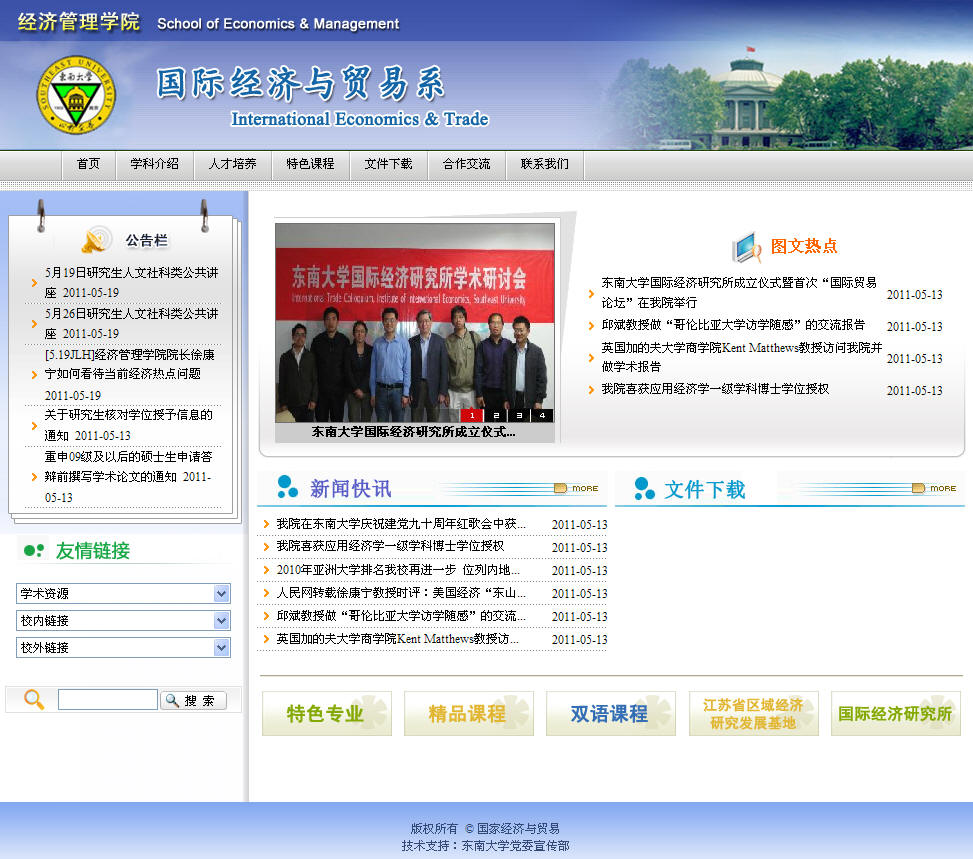 国际经济与贸易系网站拟建设成内容丰富、功能综合的网站,现已包括国际经济与贸易系的精品课程、双语课程、人才培养、特色专业等版块。