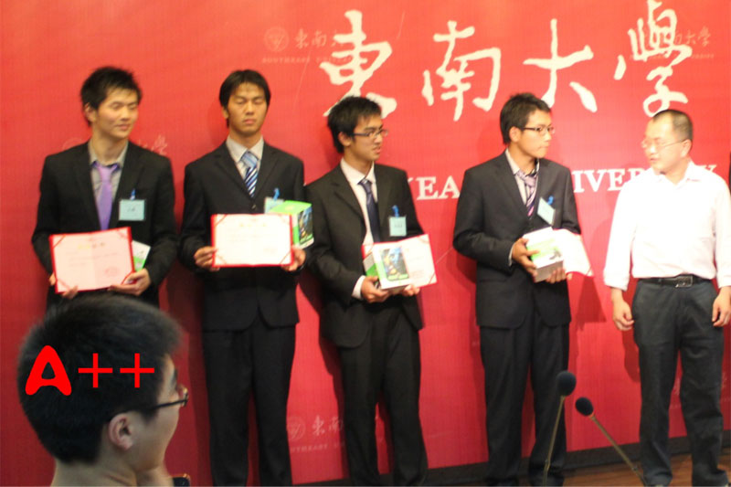 在前不久刚刚落幕的“沙场点兵”校园营销大赛中,由太阳集官网王璨、赵禹豪、杨建超、郭晓东四位2010级本科生组成的A++创意团队逆流而上,不畏艰难,用3天时间完成了一周的校园营销大赛,逆转了局势,并以营销总额第三的成绩跻身决赛,决赛场上无论是精炼的营销方案PPT解说,还是斗智斗勇的现场营销比拼,A++团队突出的个人能力和强大的团队凝聚力赢得了评委和观众的一致认可,最终,团队以决赛总分第一,现场支持率最高,营销总成绩第二的佳绩获得亚军。四位选手的精彩表现给在场的评委,观众留下了深刻的印象。图为参赛同学在比赛现场。