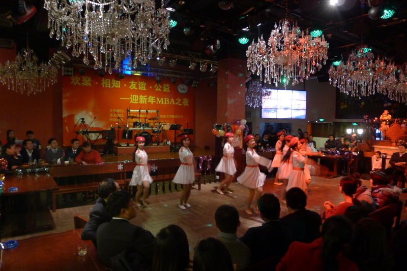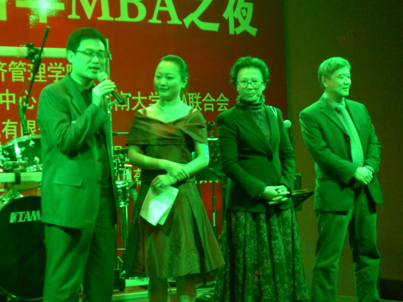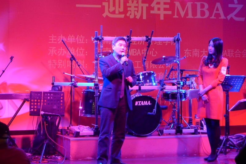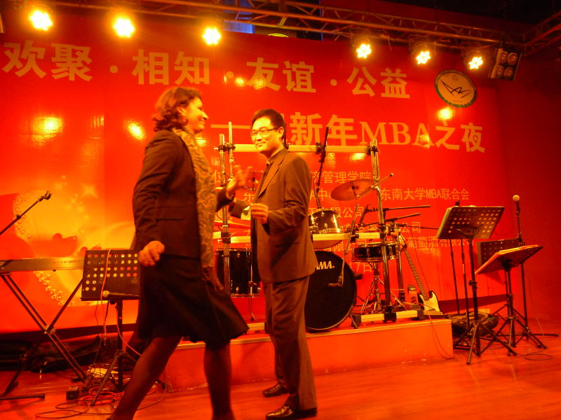 “教师颁奖环节”更是别出心裁。“最具正义感教授”、“最有风度教授”、“最HOLD住的教授”等10多个特殊的奖项均由学生策划和评选,并由学生们为老师颁奖。现场师生热情交谈,互致问候,充分体现了东大MBA师生“亦师亦友”的和谐氛围。在同学们的热情邀请下,老师们表演了精彩的节目。邱斌老师与外籍女教师热舞一曲,让大家大开了眼界。周勤老师的独唱耐人寻味,彰显了鲜明的个性特征。老师们别具一格的表演给酒会增了色、添了彩。