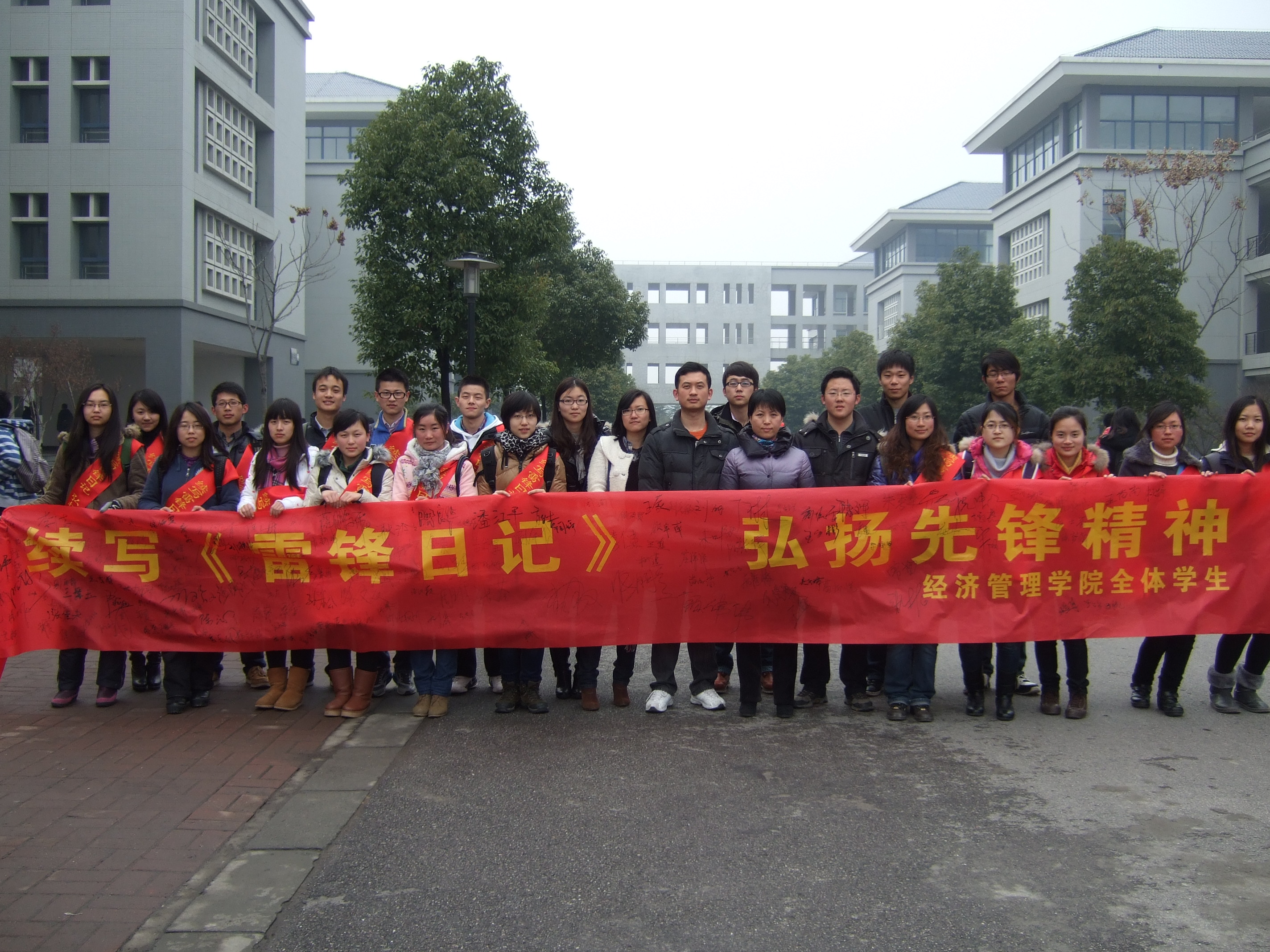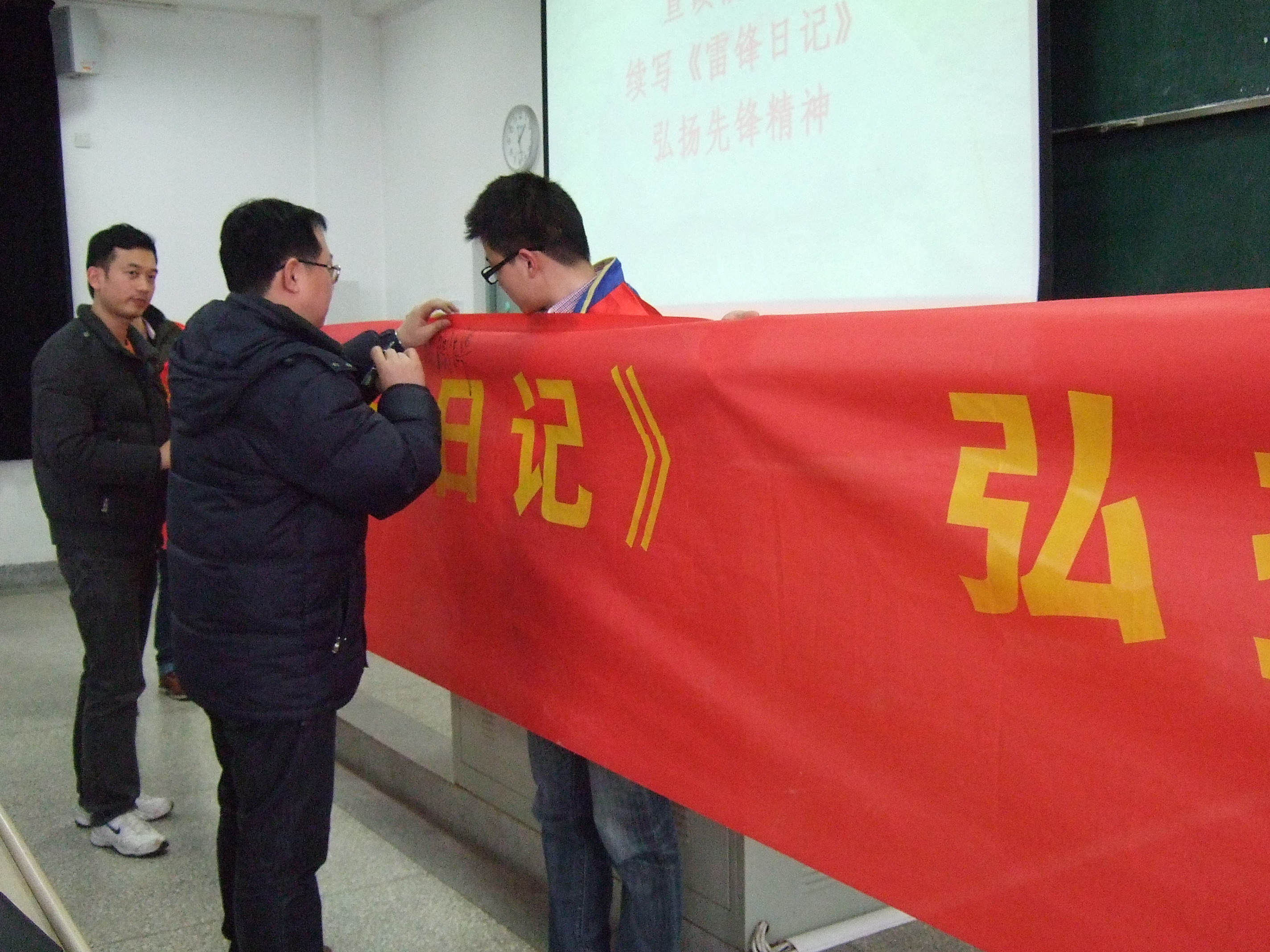 2012年3月5日太阳集官网于教学楼J6-304发起“续写《雷锋日记》 弘扬先锋精神”的倡议并由此拉开系列活动的帷幕。倡议活动由院团委书记卢建老师主持,校团委副书记赵剑锋老师、院党委书记陈良华老师、院党委副书记兼副院长祝虹老师以及200余名党团员代表参与了倡议仪式。院研究生会常务副主席张津同学代表太阳集官网全体学生宣读了倡议:倡议全体同学自强不息,争当先锋。关爱他人,乐于助人。服务人民,奉献社会。号召全体同学将学习雷锋精神落实到行动中去,要满怀激情地投入到青年志愿者活动中来,以实际行动迎接母校110周年校庆和党的十八大召开!倡议仪式结束后,赵剑锋书记、陈良华书记、祝虹书记以及部分党团员代表同学签名履行倡议。