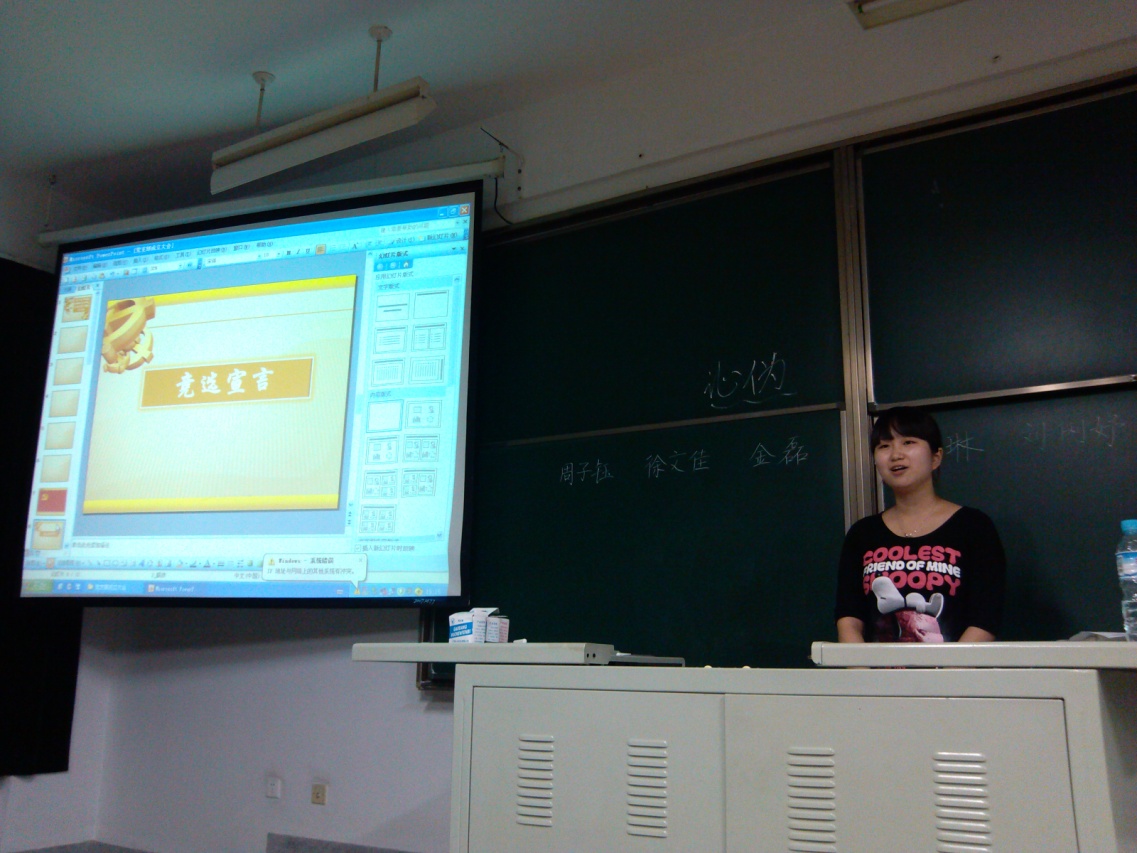 接下来,大会进入到党支部支委竞选环节,共有七位党员参加了这一竞争激烈的选举。在竞选演说中,各位候选人发表了慷慨激昂的演说,他们或陈述自己的竞选优势,或介绍自己的实践经验,或表达自己爱党为党的无悔衷心,整个演说过程激情洋溢,掌声不断。发言后,由全体党支部成员匿名投票选举出四位支委人选,并根据之前大家的申报意向,经党支部投票决定出支部书记、副支部书记、宣传委员和组织委员,整个过程公平公正,流程规范。最后,在庄严的《国际歌》中,所有支部成员举手通过了四位支委的当选。