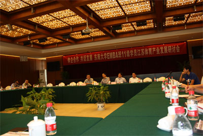 经过短暂的休整,9月23日上午,特地从南京赶来的省体育局颜争鸣副局长与学员们进行了一场江苏省体育产业发展的主题沙龙。全体学员和老师参加了此次会议,会议由EMBA中心执行主任朱卫民主持。首先,江苏省苏体公司董事长,2011级同学顾晔先生对江苏省体育产业发展的现状做了详细的介绍,并对江苏省今后体育产业的发展前景和规划做了介绍,让学员们了解了江苏省体育产业发展存在的巨大前景和动力。接下来,颜局长很风趣的介绍了政府部门对体育产业发展的重视和将会给与的扶持,并将到体育局12年来自己对江苏体育产业所做的研究及思考与大家共享,使大家对体育产业有了更为深入的了解及认识。随后学员们非常踊跃的就江苏体育产业的发展或是提出了自己的问题,或是发表了自己的宝贵意见,大家讨论激烈。