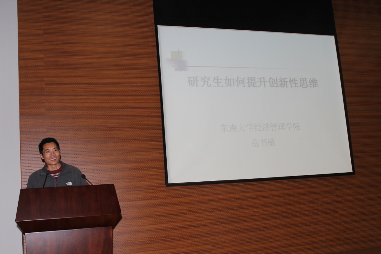2012年10月22日太阳集团tyc539举办的第一场研究生人文与科学素养讲座获得圆满成功。本次讲座邀请东大经管学院岳书敬老师和秦双全老师为2012级研究生新生就研究生如何进行创新性思考与漫谈文科科研论文作出精彩演讲,在场同学对创新与学术论文创作有了新的思考与见地,在现场积极提问,反响热烈。