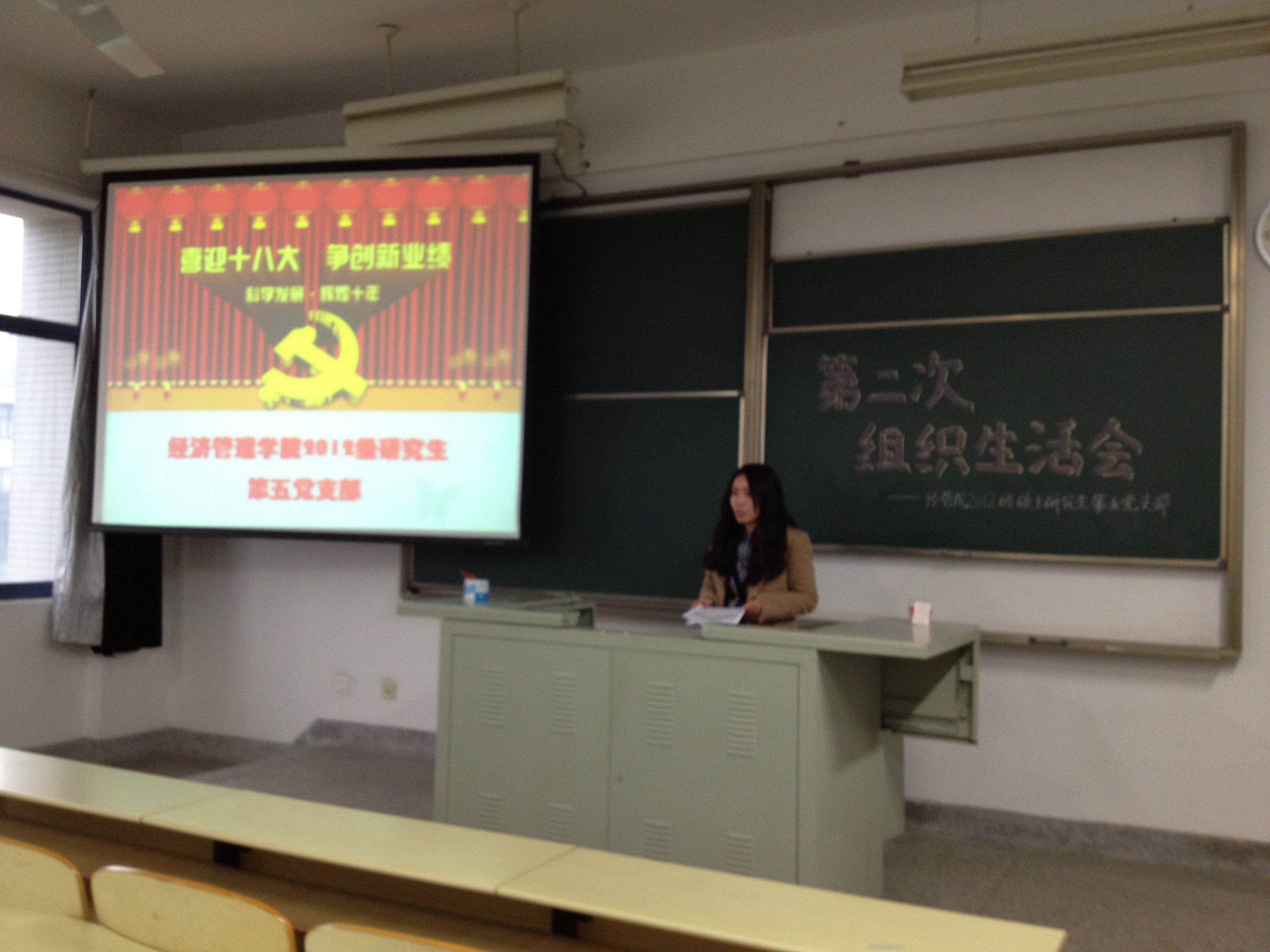 11月22日下午,太阳集官网2012级硕士第五党支部开展了第二次组织生活会。这次生活会由支部的全体同学参加,大家围绕刚刚圆满落幕的第十八次人民代表大会的有关精神,展开了热烈的讨论。