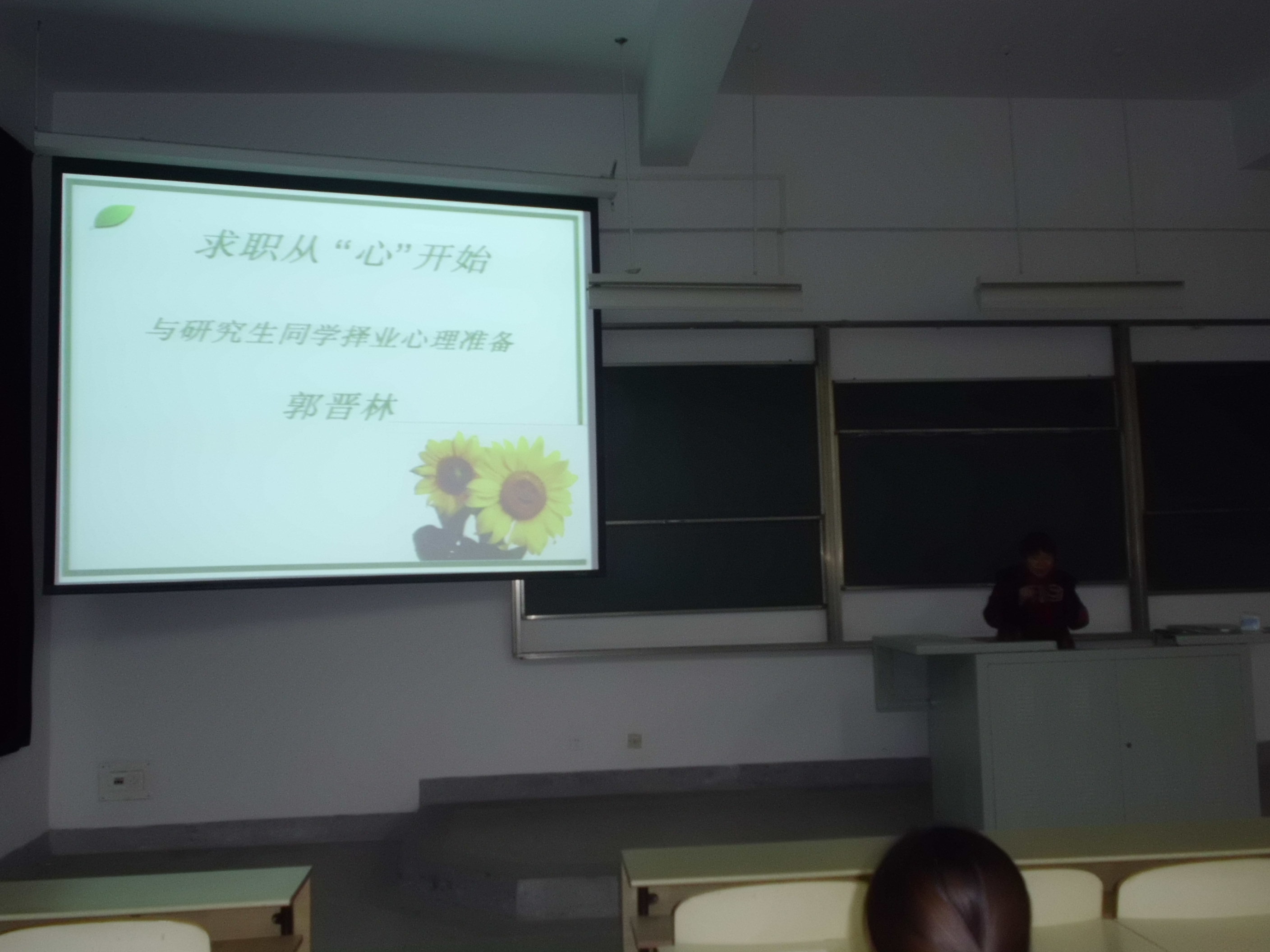 讲座于晚7点昂扬向上的校歌声中开始。本次讲座由研工部主办,太阳集团tyc539院研会心理健康部承办,邀请了郭晋林老师和大家进行心理上的交流和沟通,为“阳光伴我行”系列活动画上了圆满的句号。郭晋林老师一直用心致力于心理咨询和辅导,为大家解决学习、生活中的困惑和烦恼。讲座中,郭老师用积极乐观的状态和精神面貌为现场每一位同学传递着正能量,她教导我们:自信是健康与成功人生的基石,进入职场首先要归零心态,学做自己生命的主人,准备好自己人生软硬件等。讲座结束后,同学们受益匪浅,并积极提问,郭老师都耐心认真地为大家解除了困惑。讲座在同学们发自内心的热烈掌声中结束。