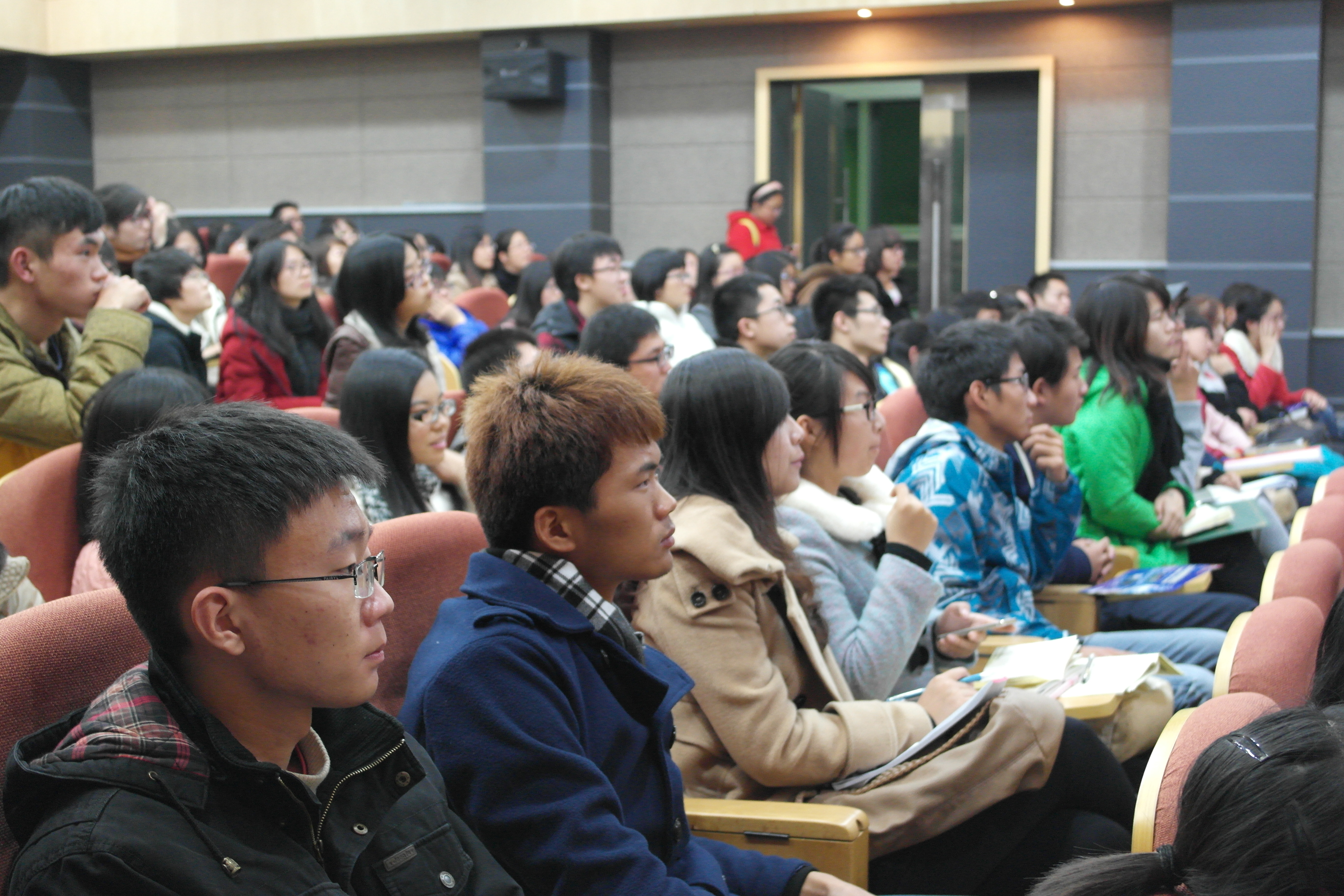 Alan Barrell教授从金融经济学的分析视角出发,深入浅出地介绍了当今世界的经济、文化中心正由西方转向东方,中国现在拥有全世界最大的贸易份额,中国在改革开放30年以来在经济领域取得了举世瞩目的成就。同时,教授用“今天的孔雀是明天的羽毛掸子”这一形象的比喻,以希腊、西班牙为例,阐述了当今欧洲国家面临的种种经济困难,并探讨了欧元区的发展前景。之后,教授还以美国电子商务行业的风险资本投资为例,介绍了世界经济的繁荣和萧条规律。并讲述了他眼中企业家需要具备的素质,包括勇于开拓的视野、铁肩担道义的社会责任感和将学术研究商业化的思维等。Alan Barrell教授以马云的阿里巴巴为例,阐述了数字时代和社交网络的迅猛发展给企业的金融创新提供的有力支撑。在最后的提问环节里,教授对同学们提出的有关公募基金和企业家才能方面的问题进行了耐心的讲解和仔细的回答,现场互动十分热烈。