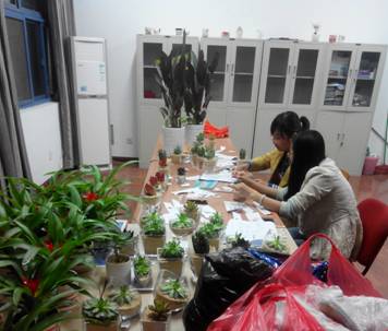 成了一盆盆精美而又养眼的盆栽,放置在图书馆的每一个角落,为同学们的学习环境增添了绿色的气