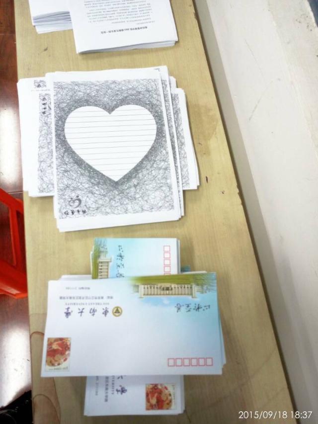 鉴于此,经管院青年志愿者协会积极响应祝书记“致新生家长的一封信”的提议,提前准备了东大信封及专用信纸,在军训结束的前一天将准备好的信封和信纸发放给2015级新生,由他们写上对家人的思念,之后于9月23日收回并寄出。与信同行的还有2015级辅导员林琼老师对新生的期望以及对各位学生家长的中秋祝福。
