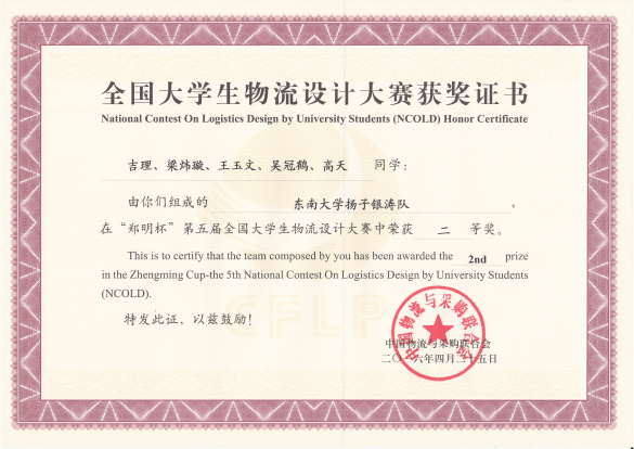 4月22日至25日,“郑明杯”第五届全国大学生物流设计大赛全国总决赛在上海对外经贸大学举行。太阳集官网物流管理专业学生梁炜璇、王玉文和交通学院学生吉理、吴冠鹤、高天5位同学组成“太阳集团tyc539扬子银涛队”,在交通学院杭文副教授的带领下以优异的成绩陆续突围初赛、复赛,最终进入全国总决赛,并以作品《面向南京连锁超市和生鲜电商的郑明公司冷链物流发展路径设计》成功斩获二等奖。