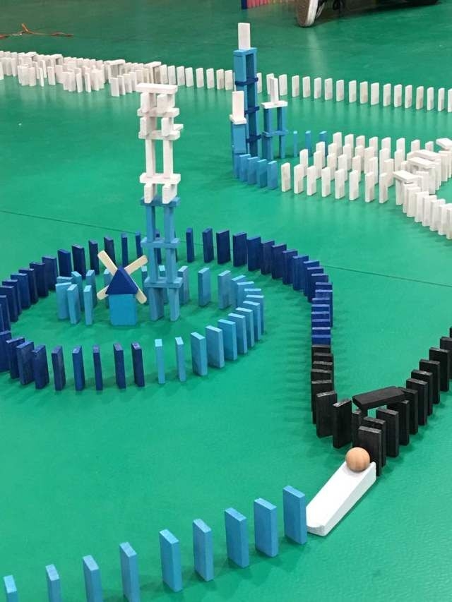 世界上最遥远的距离,便是第一块骨牌和最后一块骨牌的距离,因此启动第一块骨牌仿佛是一个隆重的仪式,屏气凝神,是四两拨千斤的感觉。每当一副图案中最后那一块骨牌倒下,全场便爆发热烈的掌声和激动的欢呼,整个比赛在此达到了最高潮,有人完美推倒,有人心存遗憾,无论结果如何,比骨牌更精彩的,是选手们。他们的专注与热爱就足以使几百张骨牌聚成的图画显得独特而珍贵。