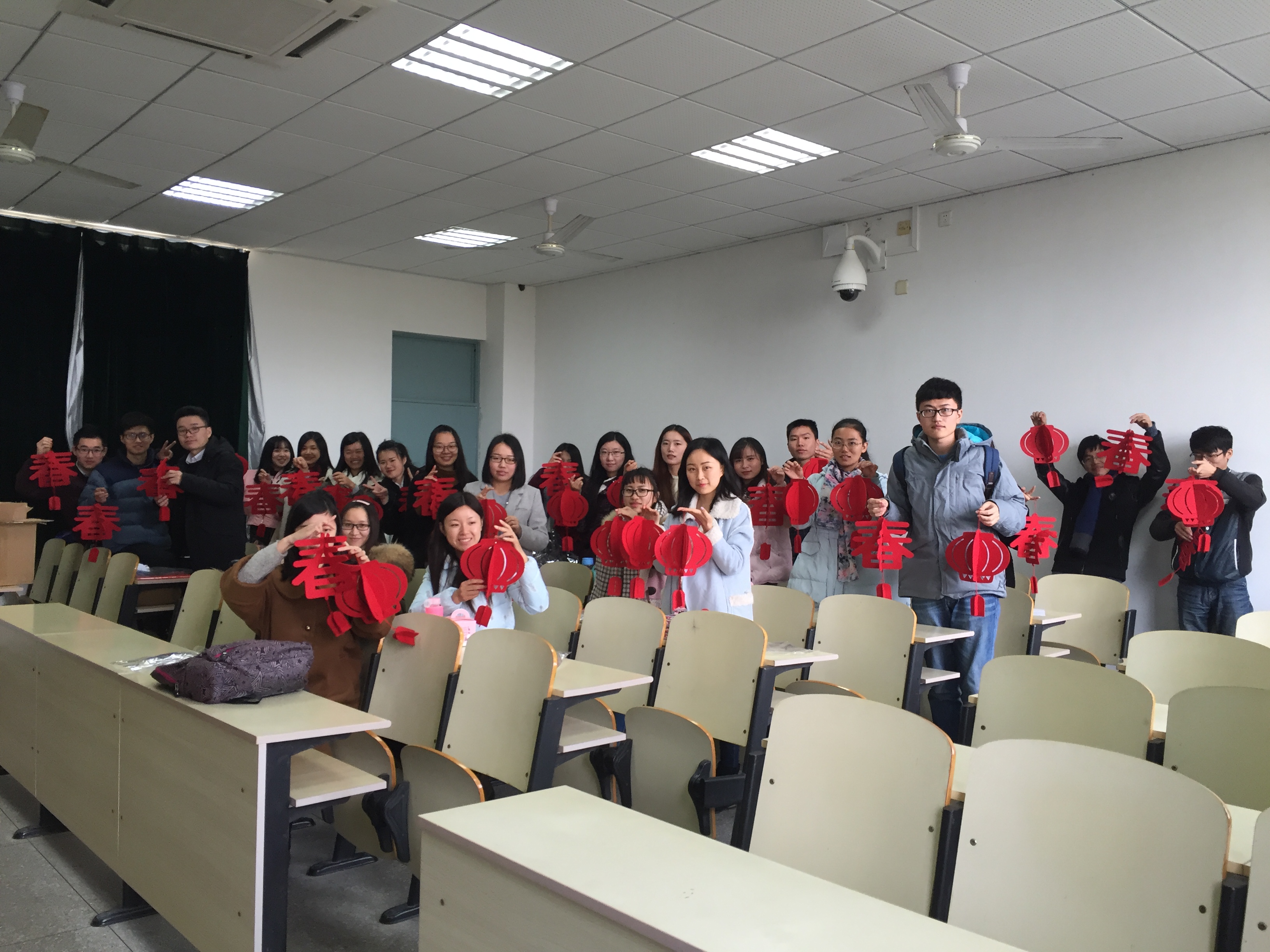 12月23日,1601党支部同学制作灯笼,准备礼物。