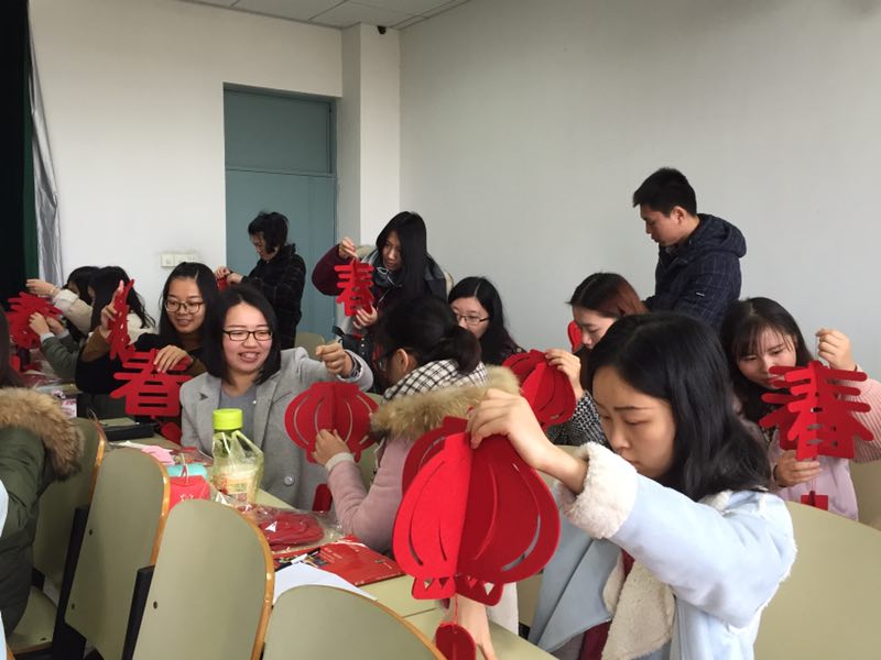 12月23日,1601党支部同学制作灯笼,准备礼物。
