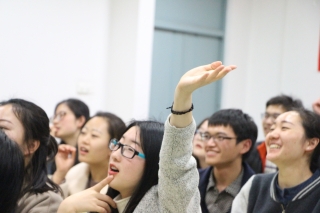 最后一个环节是“两会知识分秒抢答“。本环节设立30道有关两会要点的选择题,希望通过抢答的形式加深同学印象,掌握两会要点。为了能够抢到问题,同学们在听到主持人的口令后,齐刷刷的将手举高,不少同学站起来举手以吸引主持人的注意力,大家积极热烈的表现将活动氛围推向高潮。