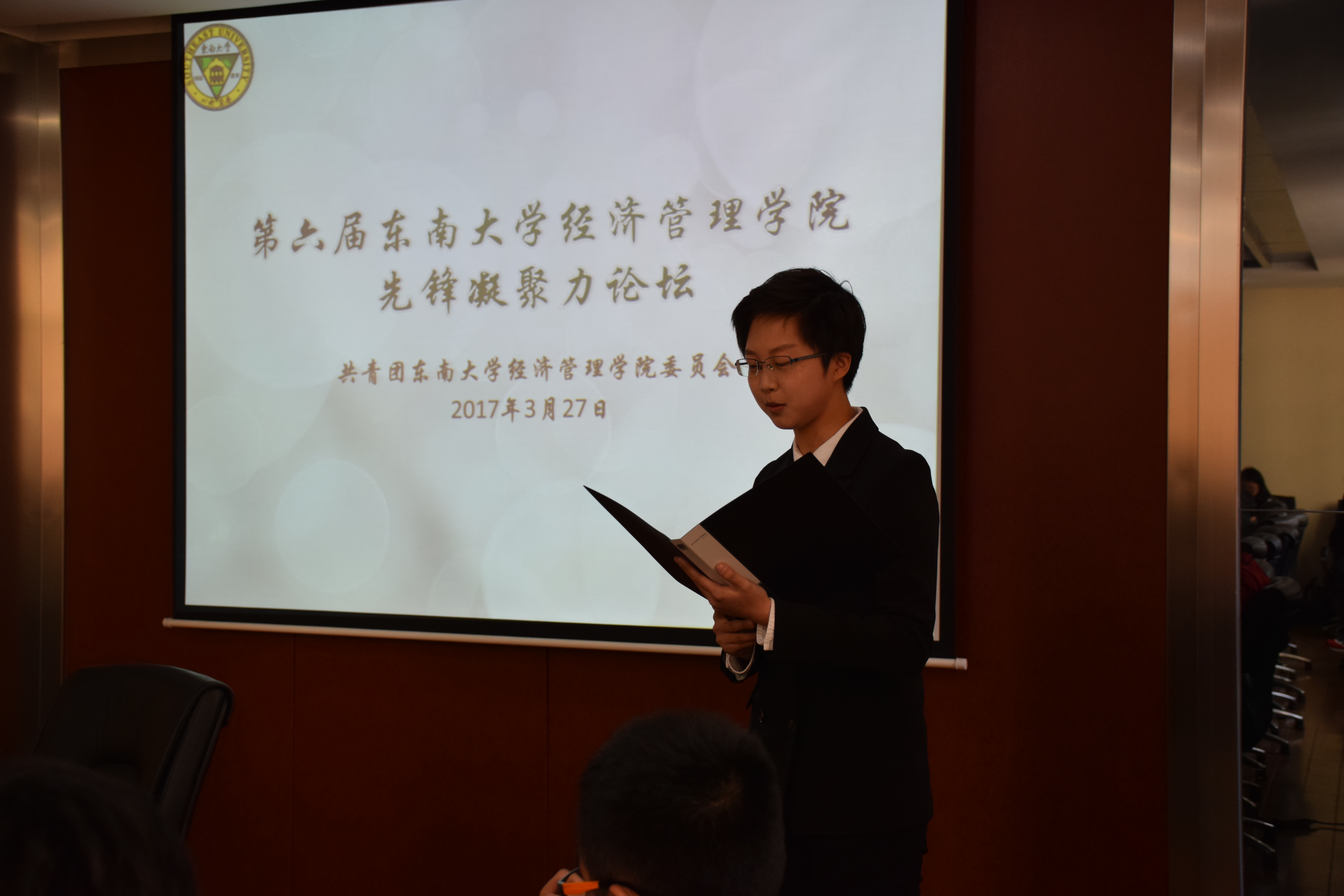 16点整,嘉宾到齐,论坛正式开始,由经管团委实践部部长宋孟璐主持开场。
