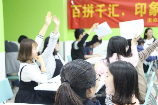 当天6点半,活动正式开始,参赛人员以组为单位参与百科知识竞答,同学们积极举手,回答问题,将活动氛围推向高潮。最终有6组同学率先正确回答出3道问题,获得优先选择拼图的权利以及相应的奖励时间,其余6组由工作人员随机分配拼图。