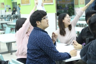 当天6点半,活动正式开始,参赛人员以组为单位参与百科知识竞答,同学们积极举手,回答问题,将活动氛围推向高潮。最终有6组同学率先正确回答出3道问题,获得优先选择拼图的权利以及相应的奖励时间,其余6组由工作人员随机分配拼图。
