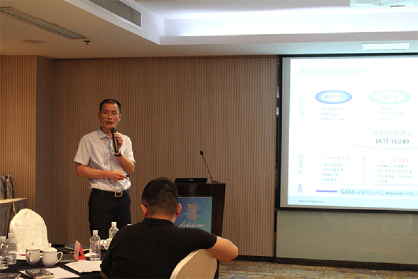 会议厅交流讨论是此行的第一站。SUSPA中国区总经理沈博士首先致欢迎辞,并对企业作了简要介绍。沈博士从苏世博(南京)的企业概况、产品与市场、核心竞争力、以及发展愿景这四个方面作了阐述,强调了技术创新、精益生产和组织能力的重要性,使师生们对这家典型的“德国隐形冠军”有了较为全面的了解。