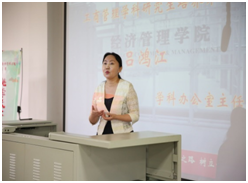 张玉林副院长作研究生培养介绍。院长助理王海燕老师、院长助理邵军老师、工商管理学科办公室主任吕鸿江老师分别对管理科学与工程学科、应用经济学学科、工商管理学科的研究生培养情况进行介绍。