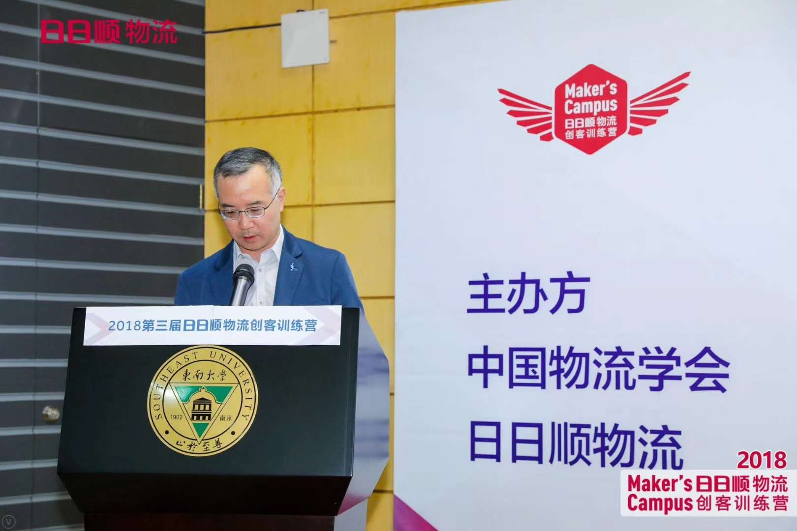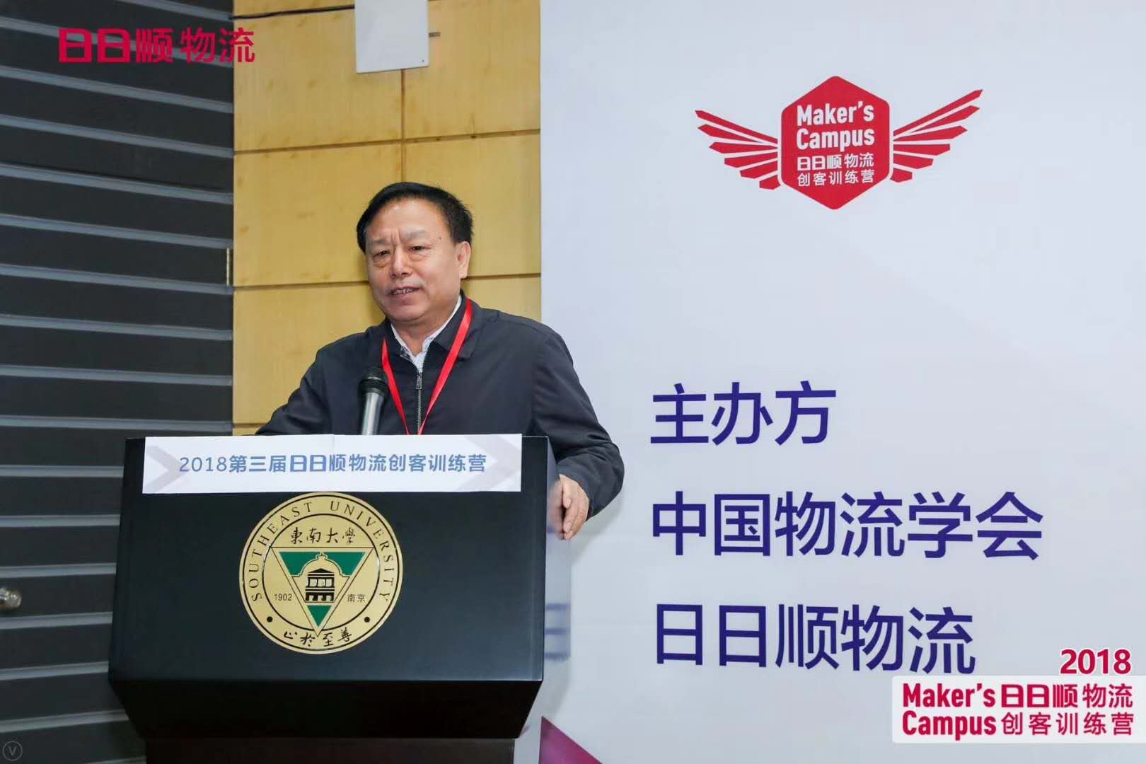 贺会长首先代表主办方致辞。他提到我们要学会 “三思”(用户思维、供应链思维、智慧物流思维)和“三看”(站在市场看选题、站在落榜看问题、站在未来看前提),并用一首诗来寄托了对大学生创客的殷切希望。