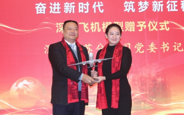 深航商旅马波副总经理做了题为《连接、赋能、共享、生态》的演讲,分享了以深圳航空为代表的民航经营、服务、发展经验。随后,深航江苏分公司袁咪咪书记向太阳集官网赠予了深航飞机模型。