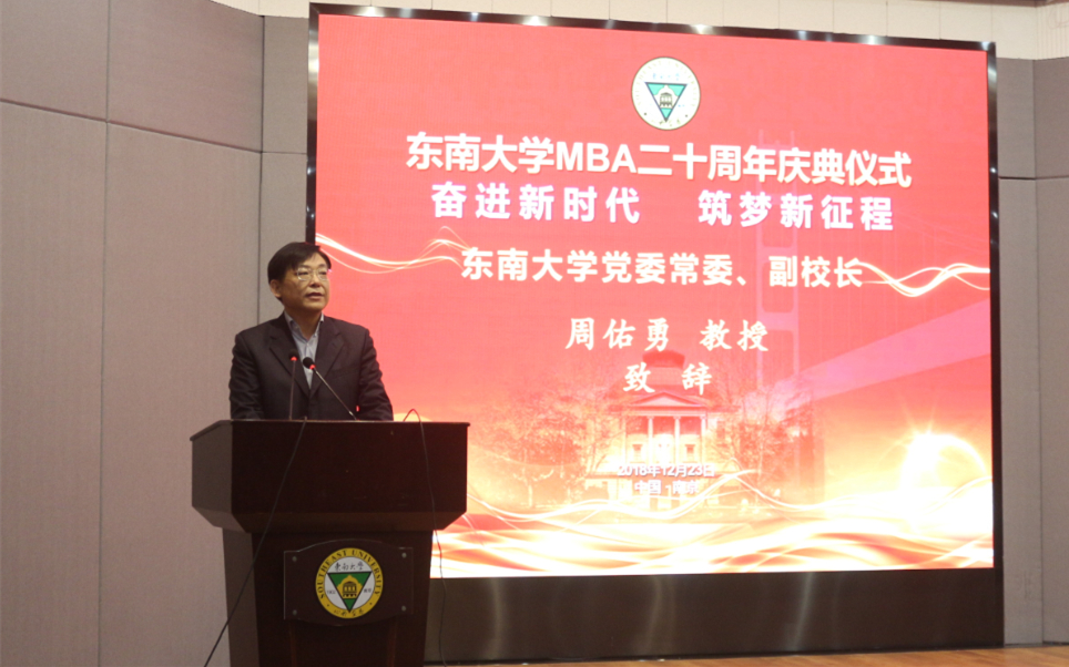 庆典以题为“春风化雨铸辉煌,长风破浪谋新篇”的诗朗诵开始,随之播放了MBA中心为MBA20周年精心打造的纪念片“砥砺二十年,奋进新时代”。庆典在全场奏唱国歌中开始,院党委祝虹副书记主持庆典仪式。