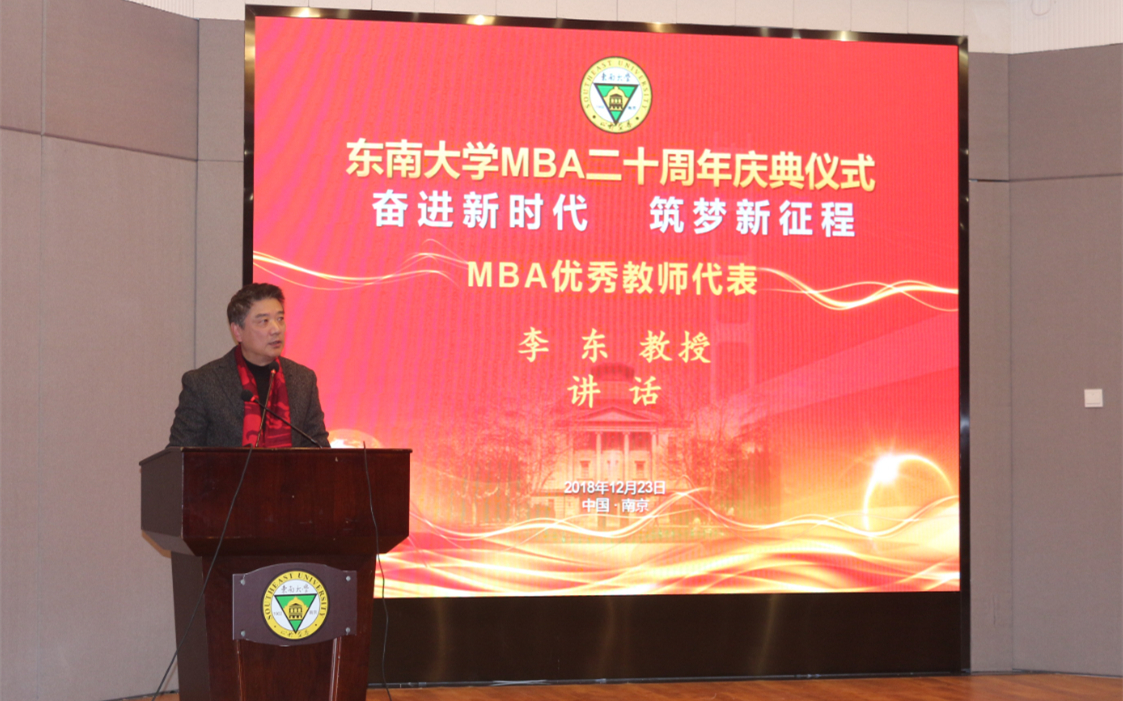 太阳集团tyc539工商管理学科带头人李东教授,代表MBA优秀教师讲话。他说,正值改革开放40周年之际,我们迎来了太阳集团tyc539MBA20周年诞辰,我们应当铭记改革开放的原始精神动力——实事求是。他认为,中国经济前进的每一步,中国社会的方方面面,都离不开实事求是的精神和态度, 每一位MBA师生都应成为推动实事求是文化的中坚力量,在利益洪流中坚定自己的社会责任感与立足点,争做传播正能量与正价值的使者。