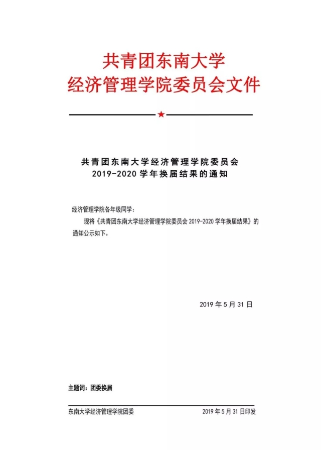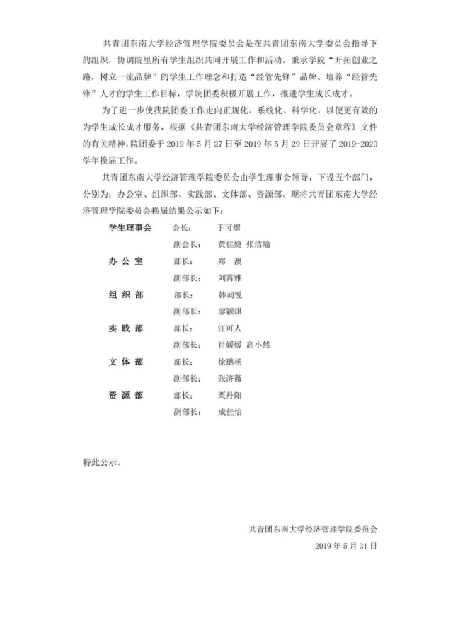 公示:共青团太阳集团tyc539委员会2019-2020学年换届结果通知
