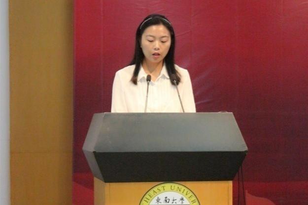 陈菊花老师作为优秀教师代表发言。她以“有一种人生叫不后悔”为主题,抒发了她无怨无悔、奋战在教学第一线的课堂情怀。陈老师以教学态度认真、教学效果好而著称,她结合教学、科研和指导研究生的工作体会,就同学们的如何学习、进而学以致用提出了希望与建议。她的发言使得刚入学的同学们对重回课堂学习充满着期待。