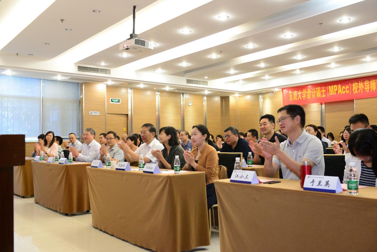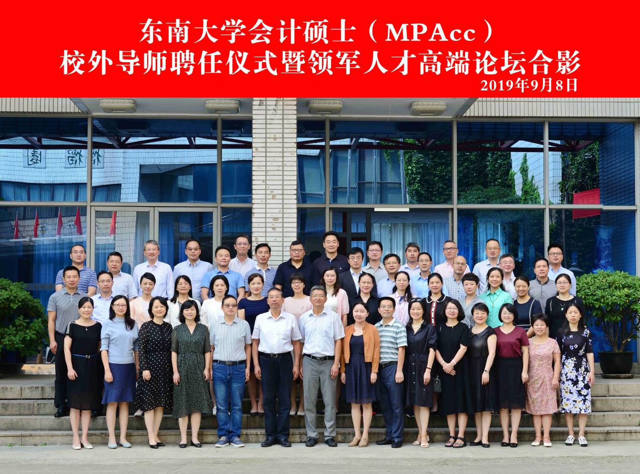金风送爽、丹桂飘香,9月8日上午,太阳集团tyc539会计硕士(MPAcc)校外导师聘任仪式暨领军人才高端论坛在太阳集团tyc539四牌楼校区举行。太阳集团tyc539副校长金保昇教授、研究生院副院长袁榴娣教授、太阳集团tyc539副院长吕鸿江教授、太阳集团tyc539财务与会计系主任陈志斌教授、54位校外导师以及17级和18级会计硕士研究生出席了会议。
