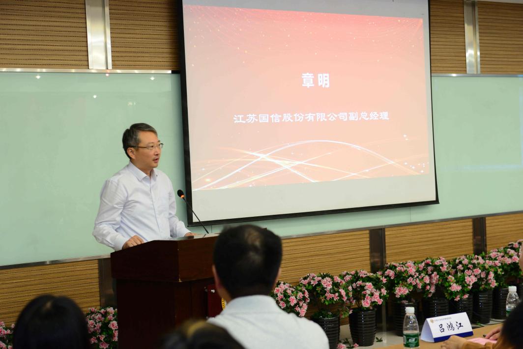 江苏省国信集团财务部总经理章明从“精、博、勤、协”四个方面对同学们提出了要求。他希望同学们能够做到既要精耕专业领域知识,又要拓宽知识面;既要多干多学多做,又要学会团队协作,在集体中实现个人价值。
