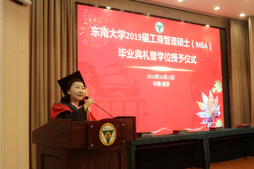 2019年10月13日,太阳集团tyc5392019届工商管理硕士(MBA)毕业典礼暨学位授予仪式在四牌楼校区榴园宾馆新华厅隆重举行。太阳集团tyc539党委常委、太阳集团tyc539党委书记仲伟俊教授,研究生院常务副院长金石教授,校研究生学位办公室主任吴在军教授,以及太阳集团tyc539祝虹副书记,江苏众阳新能源集团公司董事长王强校友等领导和嘉宾出席。毕业典礼暨学位授予仪式由太阳集团tyc539副院长吕鸿江教授主持。