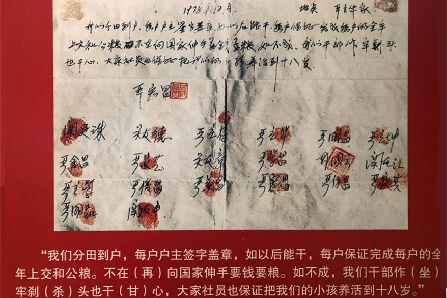 小岗村是中国农村改革“大包干”发源地。“大包干拉开了中国农村改革的大幕。农村改革的成功为城市改革提供了借鉴,农业和工业、农村和城市之间相互影响、相互促进,推动我国改革向更深入、更广阔的领域前进,从而造就了一个伟大民族的腾飞、一个发展中大国的崛起。”