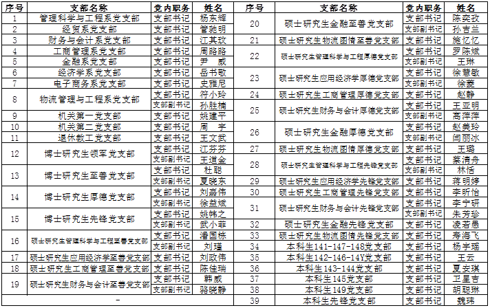 根据《关于做好党支部换届工作的通知》(东大委﹝2019﹞56号)文件精神,经各党支部选举,产生新一届支部书记、支部副书记。