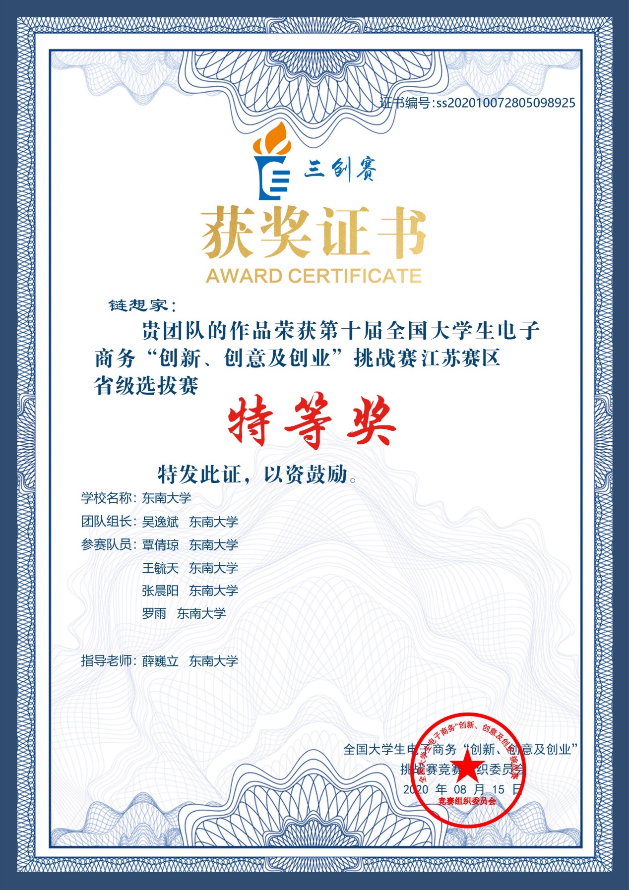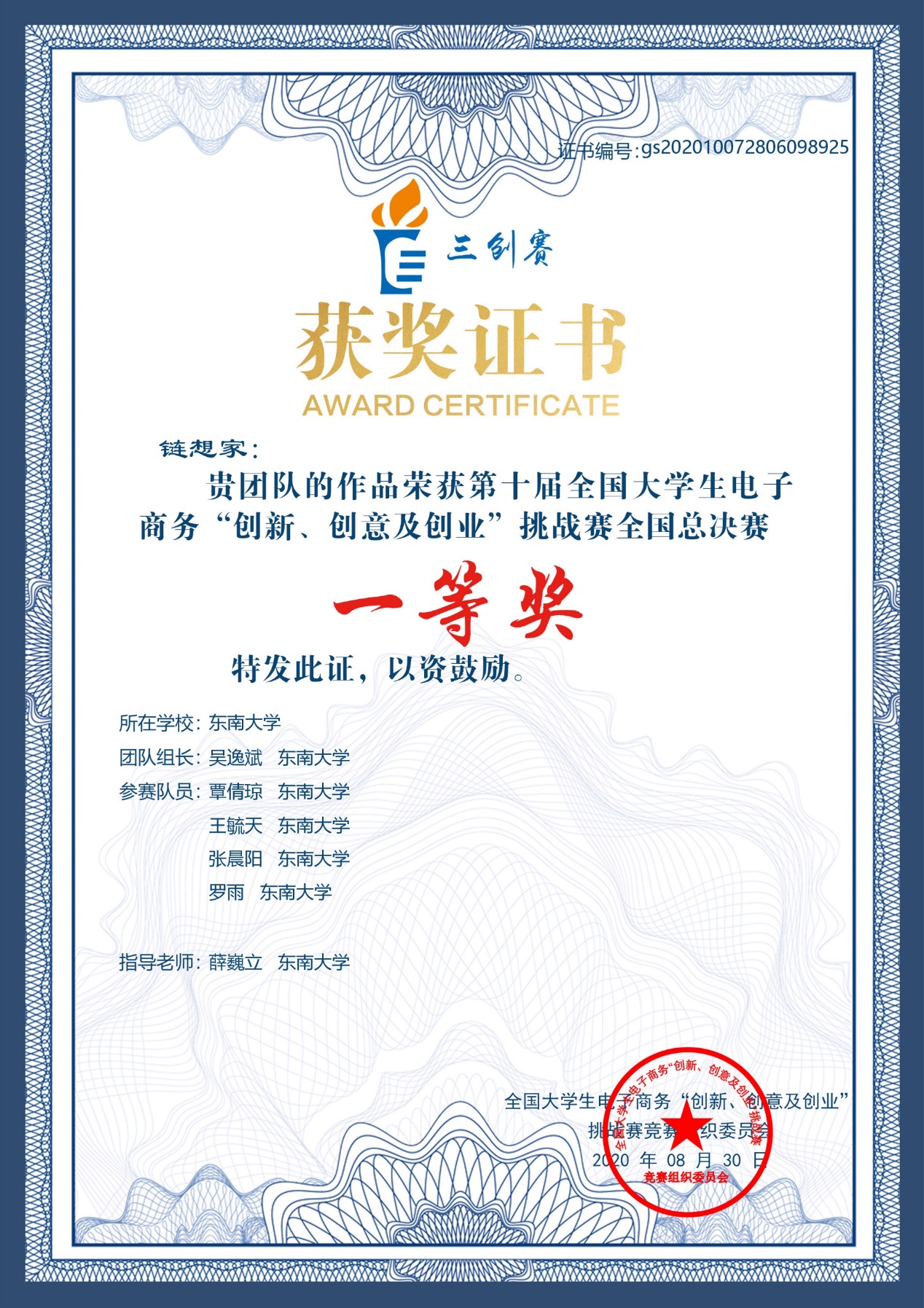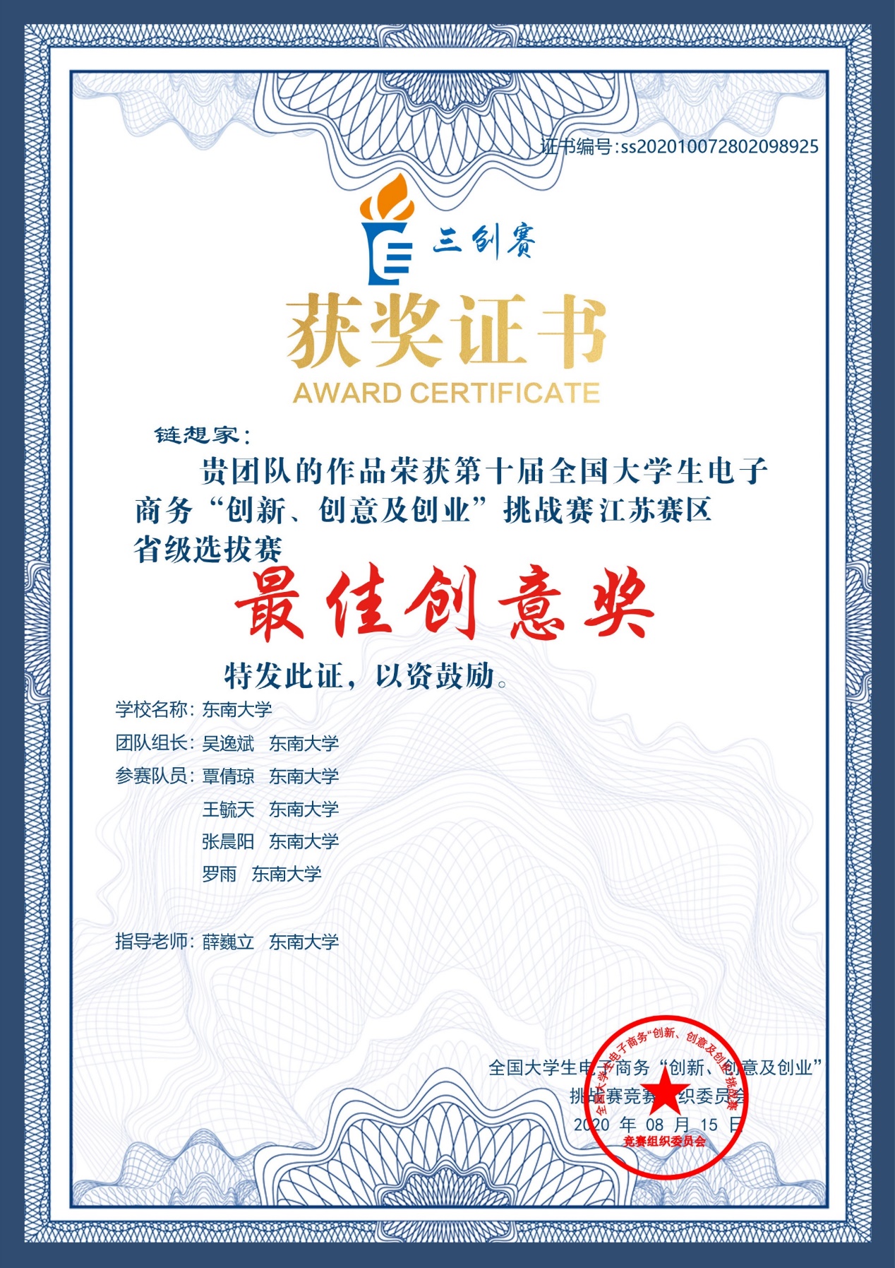 2020年822日上午,伴随着颁奖典礼和闭幕式的结束,第十届全国大学生电子商务“创新、创意及创业”挑战赛圆满落幕。在太阳集官网薛巍立老师的指导下,物流管理专业吴逸斌所带领的 “链想家”团队历经校赛、省赛、国赛,历时数月,斩获省级选拔赛特等奖、省级选拔赛最佳创意奖,最终取得了全国一等奖的好成绩。薛巍立老师也获得了省级选拔赛和全国总决赛优秀指导老师奖项。