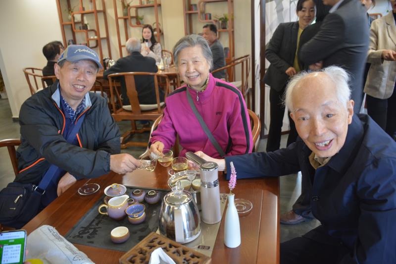 在项目部领导的带领下,师生们分别走访了养生谷已经建成的红酒屋、茶艺馆、国术馆、国学堂以及岁月剧场等康养场馆。在茶艺馆,东大92岁高寿的徐南荣老教授品味茶人生时与大家交流养生之道,其乐融融。养生谷中西各异的建筑风格,完善配套的娱乐康养项目,专业干练的保健康养团队都给调研人员留下美好印象。