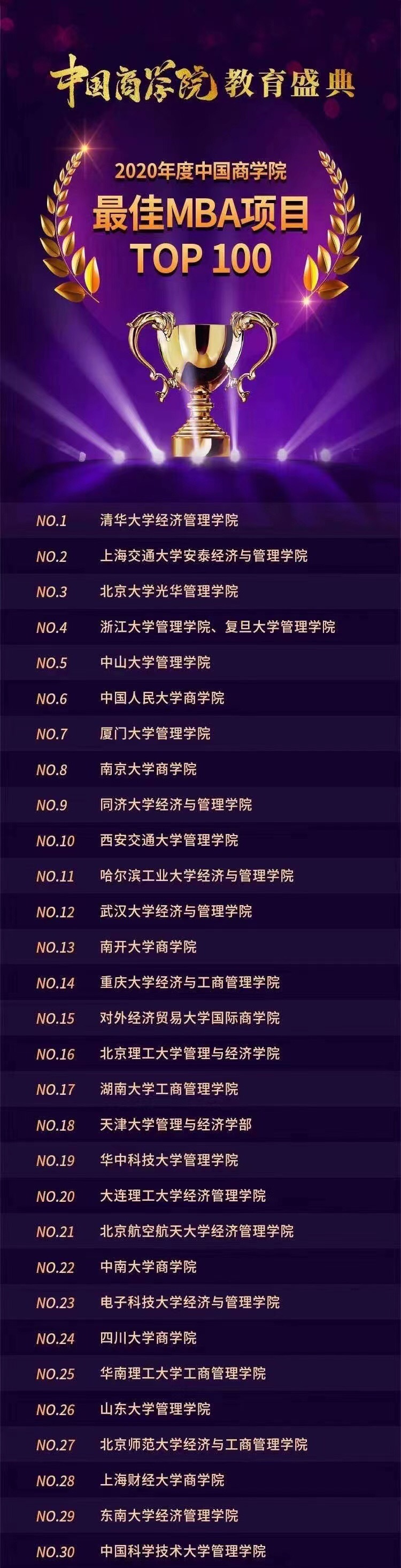 目前,全国共有246所MBA培养院校,太阳集团tyc539是第三批(1997年批准)开办MBA项目的高校,前三批MBA培养院校共有55所。太阳集团tyc539MBA凭借百年名校的深厚底蕴,依靠商科发展的雄厚实力,依托“培养质量为先、成长发展为重”的培养理念,始终站在MBA优秀培养院校行列。此次评选是对我校MBA办学成果的一次检验,我校MBA项目排名位列全国第29,这是对我校MBA办学成果的一次检验,体现了社会各界对我校MBA项目的一致肯定,这是学校及学院历届领导、全体MBA师生共同努力的结果。这次评选,让我们看到了可喜成绩的同时,更明确了与兄弟院校的差距,可以说,既有动力,更有压力。后续,太阳集团tyc539MBA项目将秉承“经世济民、管理制衡”的价值观,遵循目标导向原则,持续推进改革创新,为进一步提高MBA培养质量而继续努力。