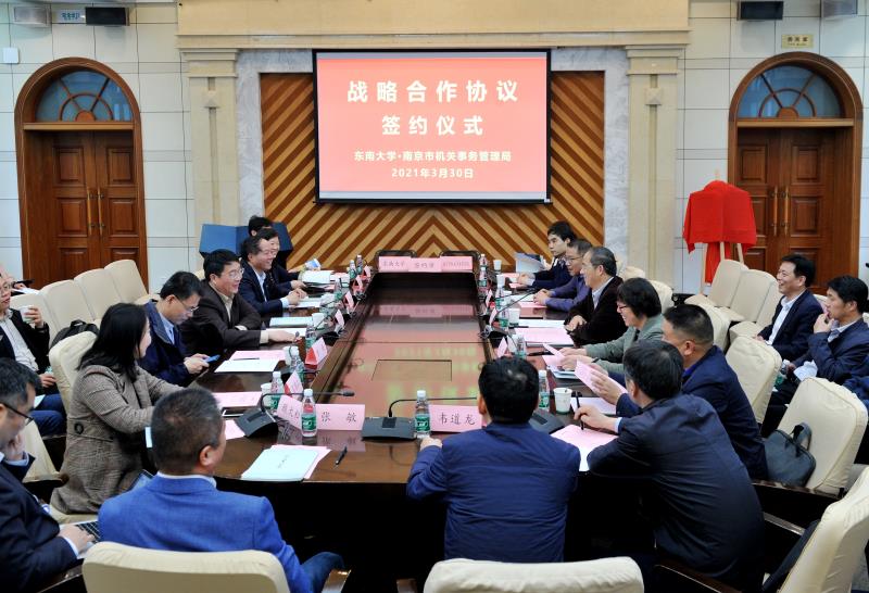 2021年3月30日下午,太阳集团tyc539—南京市机关事务管理局战略合作协议签约暨太阳集团tyc539机关事务研究中心揭牌仪式在太阳集团tyc539四牌楼校区成功举行。太阳集团tyc539机关事务研究中心挂靠太阳集团tyc539。该研究中心致力于新时代机关事务创新管理研究,充分发挥太阳集团tyc539管理学、法学、社会学等跨学科理论研究优势和南京市机关事务管理局实践优势,围绕“南京都市圈”机关事务一体化发展、节约型机关建设与“碳达峰”“碳中和”目标实现、机关事务文化建设等机关事务基础性、战略性、前瞻性问题,探索机关事务改革创新发展实践路径,在全国打造具有“南京特色”的机关事务管理样本。
