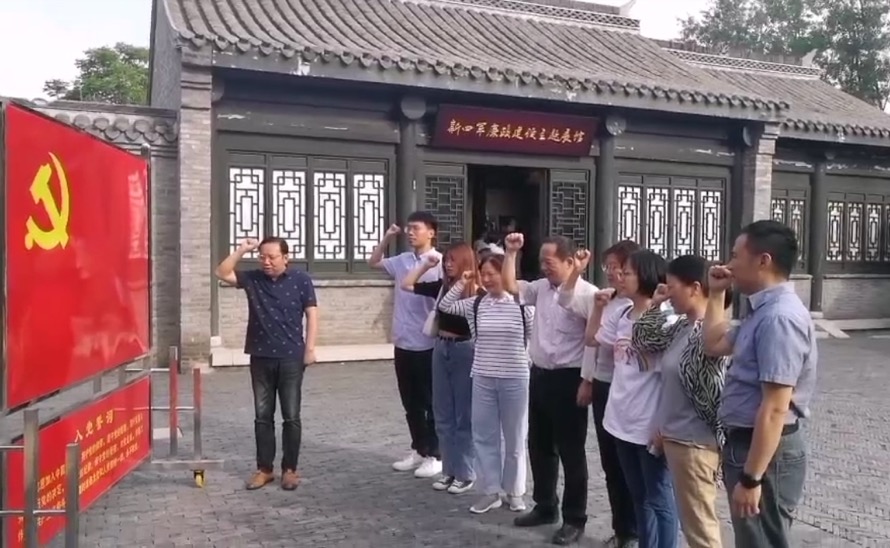 当大家来到华中局党校纪念馆时,新四军廉政建设主题展馆和草棚党校深深地吸引了大家,让大家感知了新四军从严治党的光辉形象。在这里,支部全体党员面对党旗,在庄严肃穆中重温入党誓词,表达了为党的事业奋斗终身的坚定决心。
