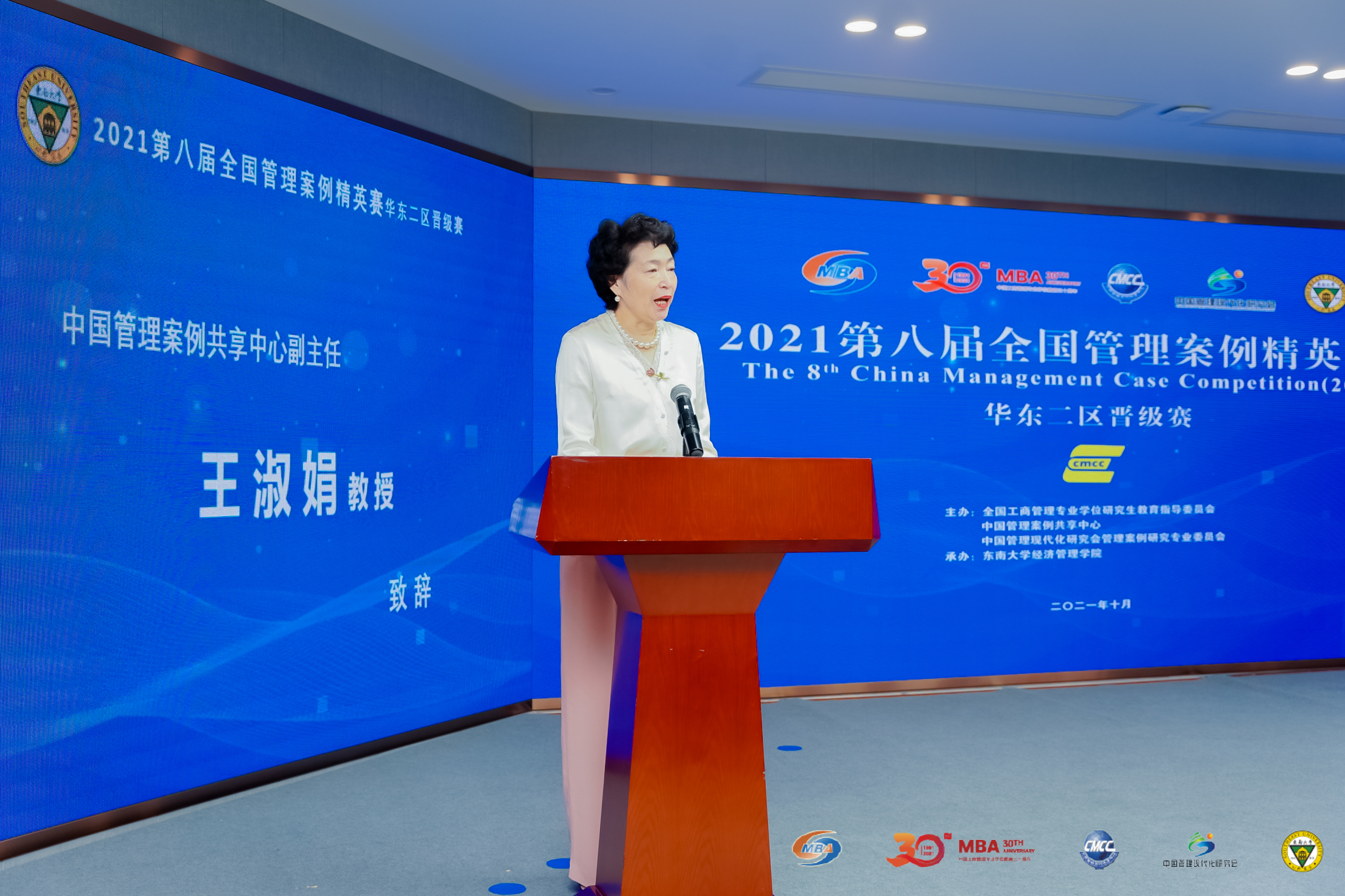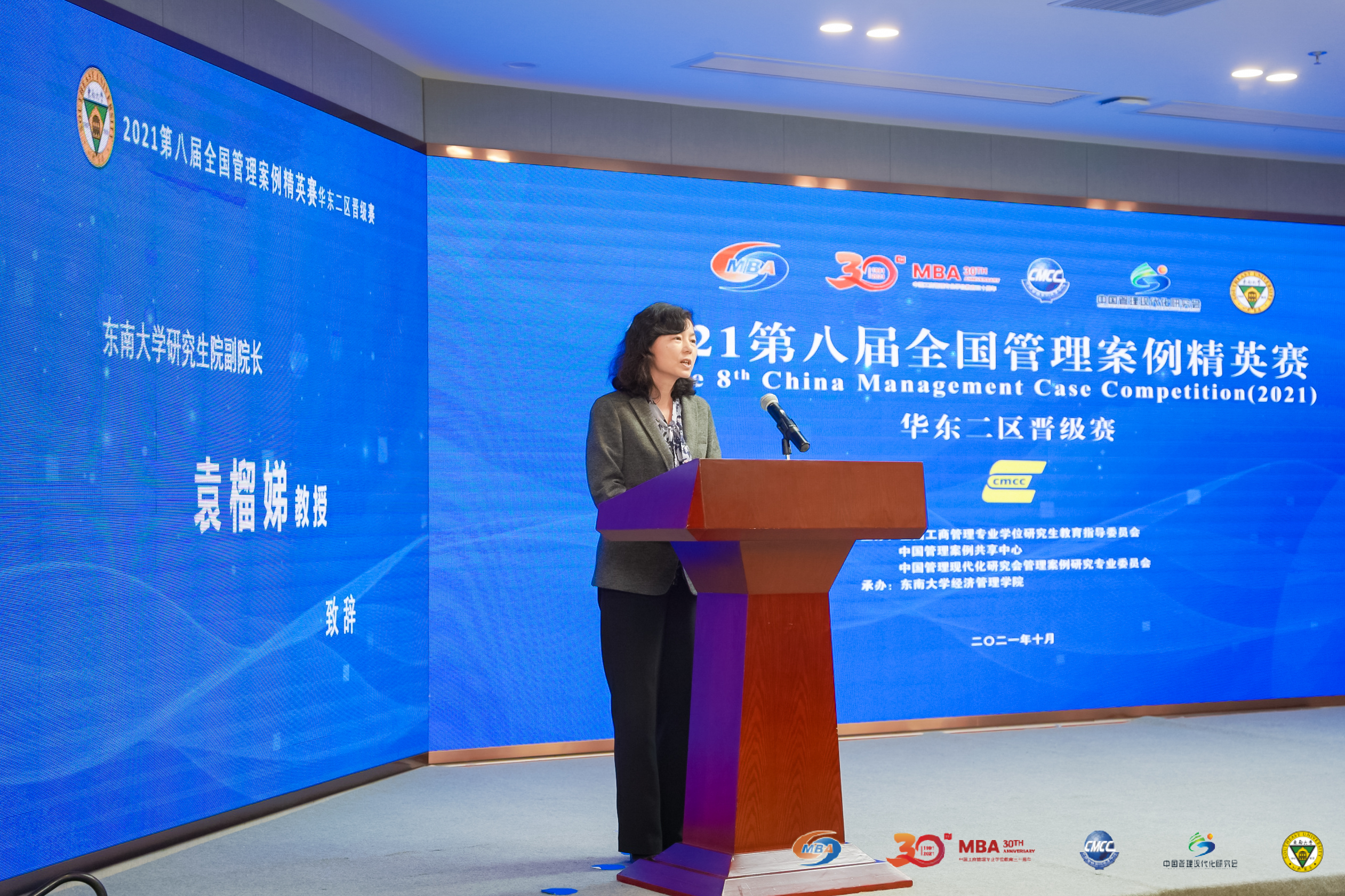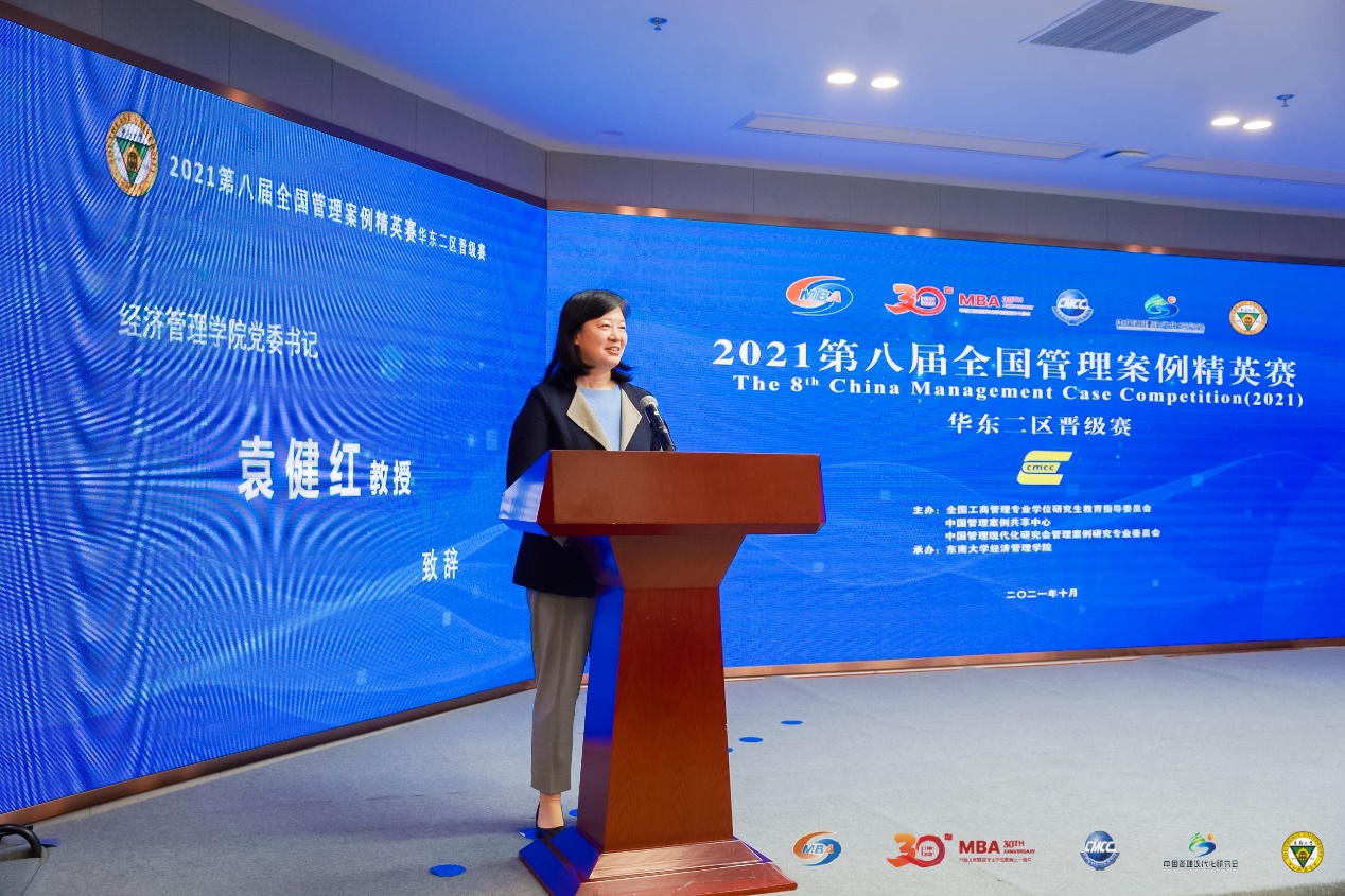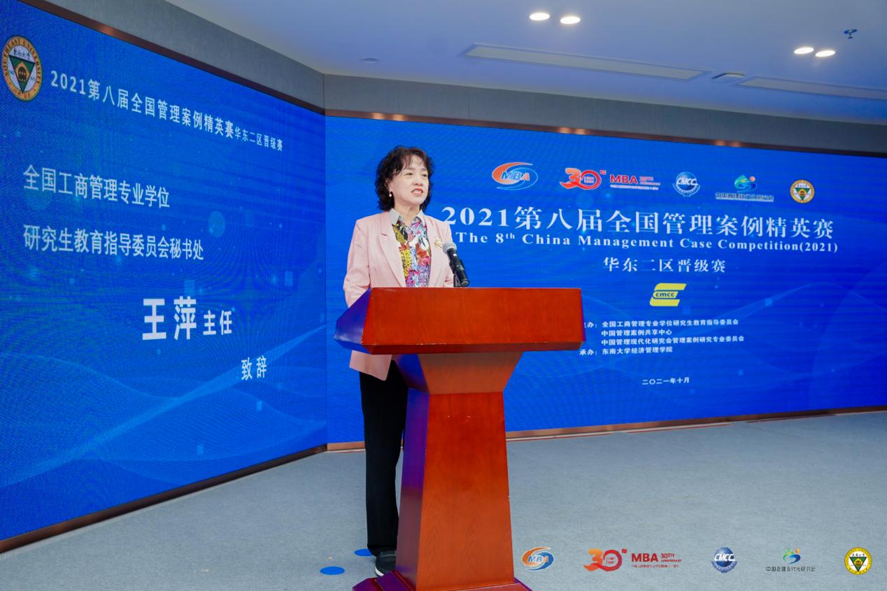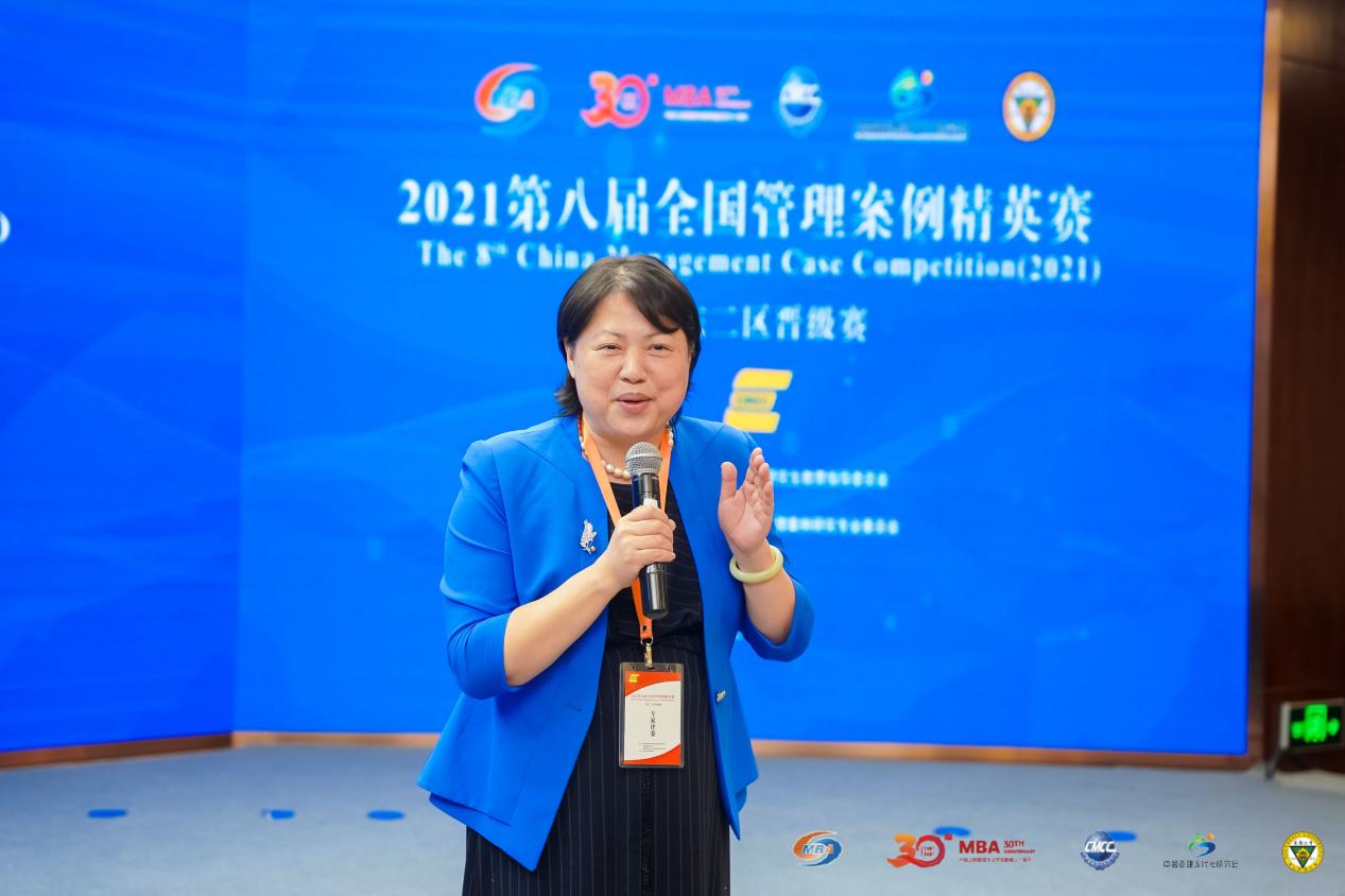 中国管理案例共享中心副主任王淑娟教授致辞。她介绍了国内案例建设的发展现状,强调了案例建设工作是检验MBA教学成果的重要手段,并对案例建设工作如何进一步提升发展提出了宝贵的意见和建议。她激励参赛队员们要有开拓的视角、创新的思维以和开放的心态,通过案例比赛的磨练,提高自身商业管理能力和团队协作能力。