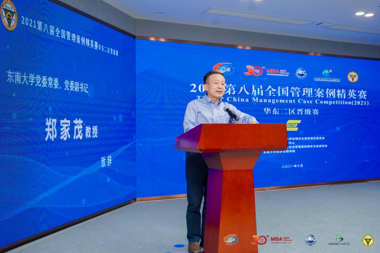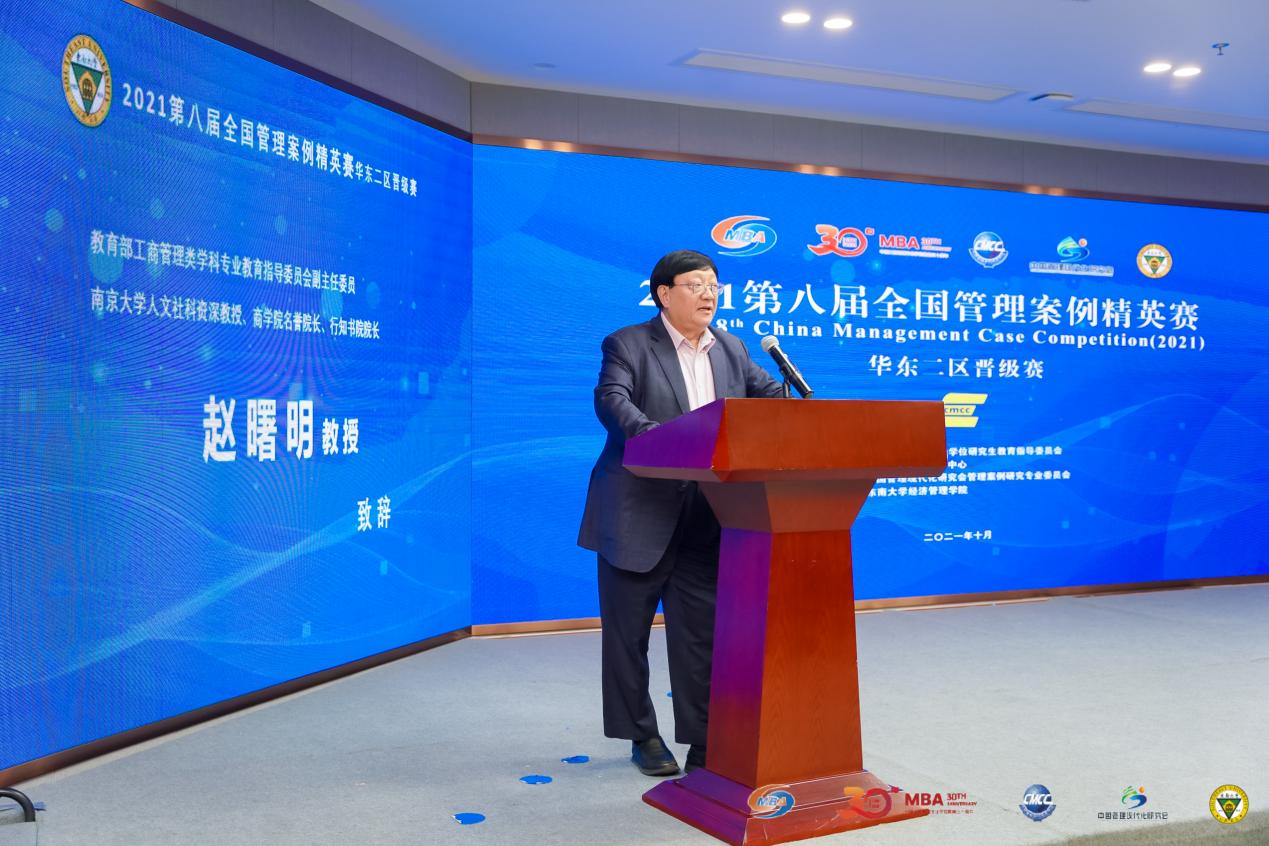 教育部工商管理类学科专业教育指导委员会副主任委员赵曙明教授致辞。赵老师指出,MBA教育更为重要的是如何将理论运用到实践之中,注重解决实际问题。他阐明了案例大赛对MBA培养的积极意义,案例大赛作为MBA案例教学的一种辅助教学方法,旨在通过案例分析的方式,让学员融入管理实践情境,更好地触及企业发展的现实问题。他希望通过这种高水平的竞赛和具体的案例分析,让MBA学员拥有更广的全球视野和战略眼光。