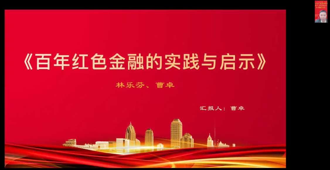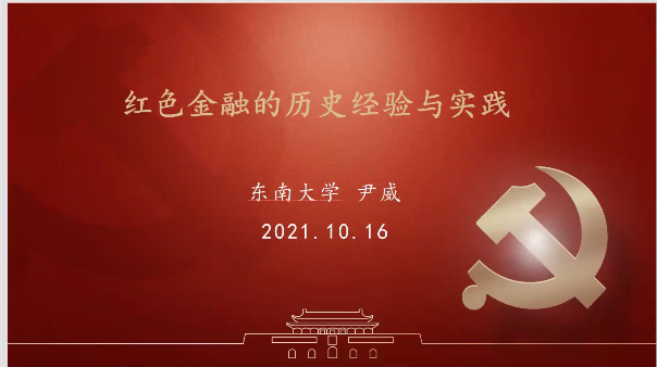太阳集团tyc539金融系党支部书记尹威副教授从红色金融的历史经验与实践的视角,分享了红色金融经典案例,并从历史视角总结归纳实践经验,深入思考新时期金融安全风险防控,提出要积极探索以人民为中心的金融实践与创新前沿问题。