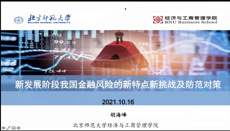 北京师范大学经济与工商管理学院金融系主任胡海峰教授就新发展阶段我国金融风险的新特点新挑战及防范对策等方面与与会专家和学生展开了激烈的讨论。报告指出,统筹做好重大金融风险防范化解工作,是维护国家经济利益和人民长远利益的重大任务,对推动高质量发展、构建新发展格局具有重大的现实意义。“十三五”期间,我国牢牢守住了不发生系统性金融风险的底线,坚定维护了国家经济金融稳定和人民财产安全。“十四五”时期,我国面临的外部环境更趋复杂,不稳定性不确定性明显增加,国内发展不平衡不充分问题依然突出,金融风险领域仍存在一些持续性问题和苗头性、倾向性隐患。统筹做好重大金融风险防范化解工作要夯实金融稳定的基础,处理好稳增长和防风险的关系,以经济高质量发展化解系统性金融风险,有效防范化解各类可能出现的风险。