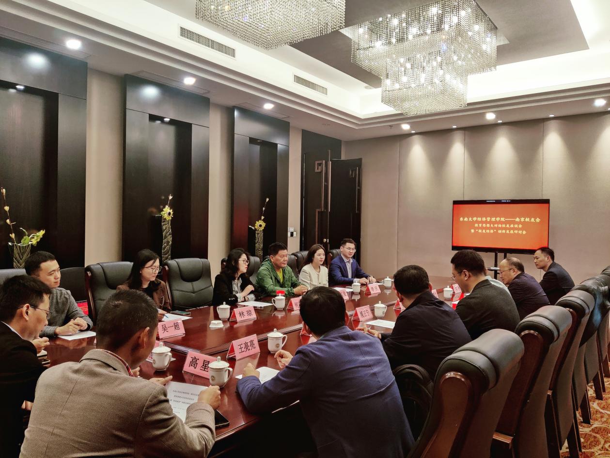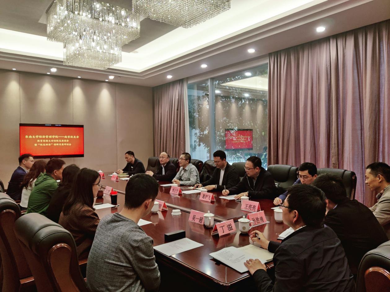 太阳集团tyc539经管学院党委副书记兼副院长何熠、副院长浦正宁、薛巍立一行,南京校友会常务副会长朱文俊,秘书长李庆,副秘书长何平平,经管院友代表江苏智荟港科技产业集团副总裁尼宁、楚航科技耿浩等出席会议。