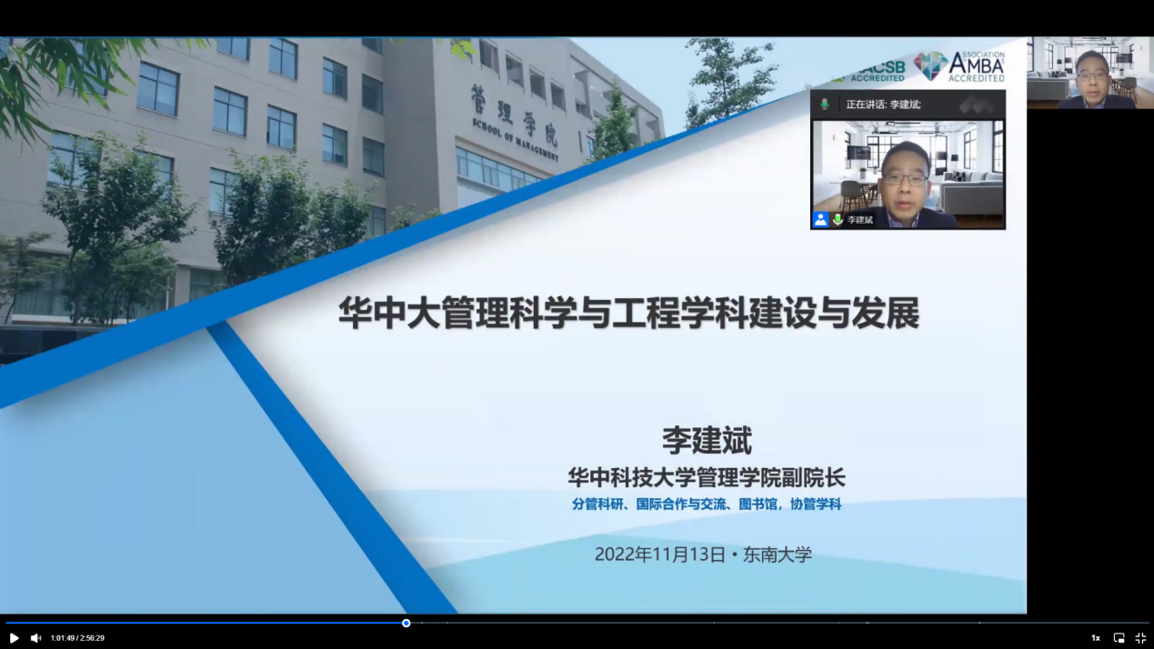 11月13日上午,太阳集团tyc539积极响应学校“立德树人的东大使命和生为首位的东大行动”为主题的新一轮教育思想大讨论,召开了“学科交叉背景下的人才培养与学科建设”在线研讨会,会议邀请了北京大学工学院副院长宋洁教授、浙江大学管理学院副院长杨翼教授、华中科技大学管理学院副院长李建斌教授、南京大学工程管理学院副院长陈彩华教授。各位嘉宾就学科交叉背景下的人才培养与学科建设进行了经验介绍,并与学院老师进行了深入的讨论和交流。会议由薛巍立副院长主持,太阳集团tyc539党委书记袁健红、副书记何熠、副院长张玉林、吕鸿江、浦正宁以及学院教职工全程参与了本次研讨会。