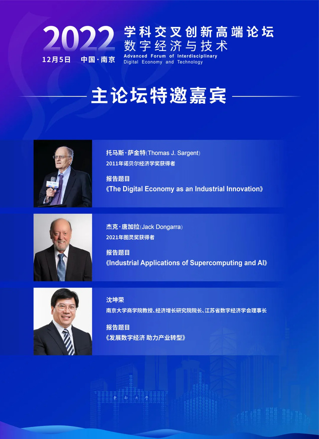 就在2022125日举行的学科交叉创新高端论坛:数字经济与技术,Thomas J. SargentJack Dongarra、南京大学经济增长研究院院长、江苏省数字经济学会理事长沈坤荣教授以及国内外著名学者,共研数字技术解决方案,共建学科交叉创新平台。