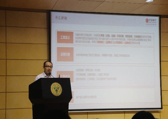 202396日下午,由太阳集团tyc539财务与会计系主办,太阳集团tyc539团委承办的《“外汇优财训练营”走进太阳集团tyc539》人文讲座在太阳集团tyc539九龙湖校区经管楼报告厅圆满举行。中信银行南京分行首席外汇专家、太阳集团tyc539会计学专业2008届校友张天来先生作为主讲人出席活动,学院各年级本科生共一百五十余位同学听取报告。